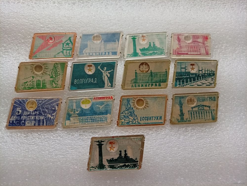 Значки переливашки. Ленинград. Севастополь. Кисловодск. Волгоград. Ессентуки. Конституция. Армия. Цена указывается за один значок. #-V-07