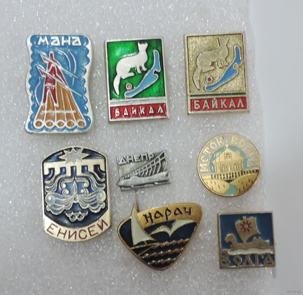 Значки "Реки и озёра" СССР - 8 шт. Алюминий.