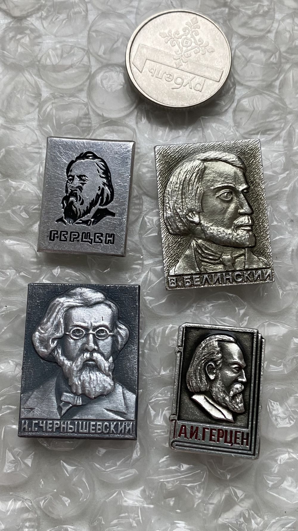 Значки Русские поэты и писатели, 4 шт