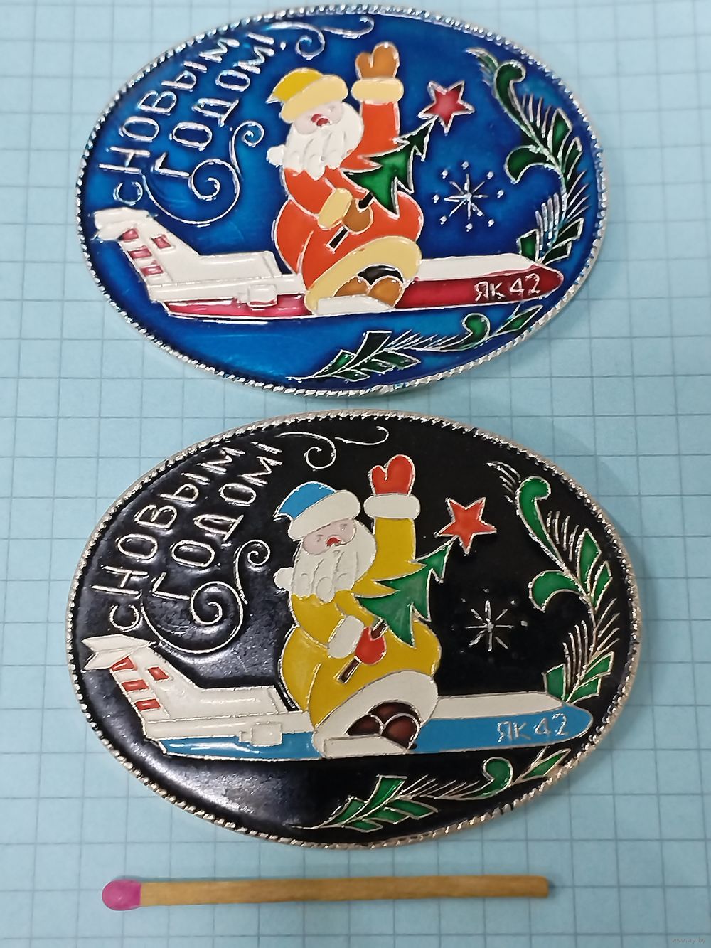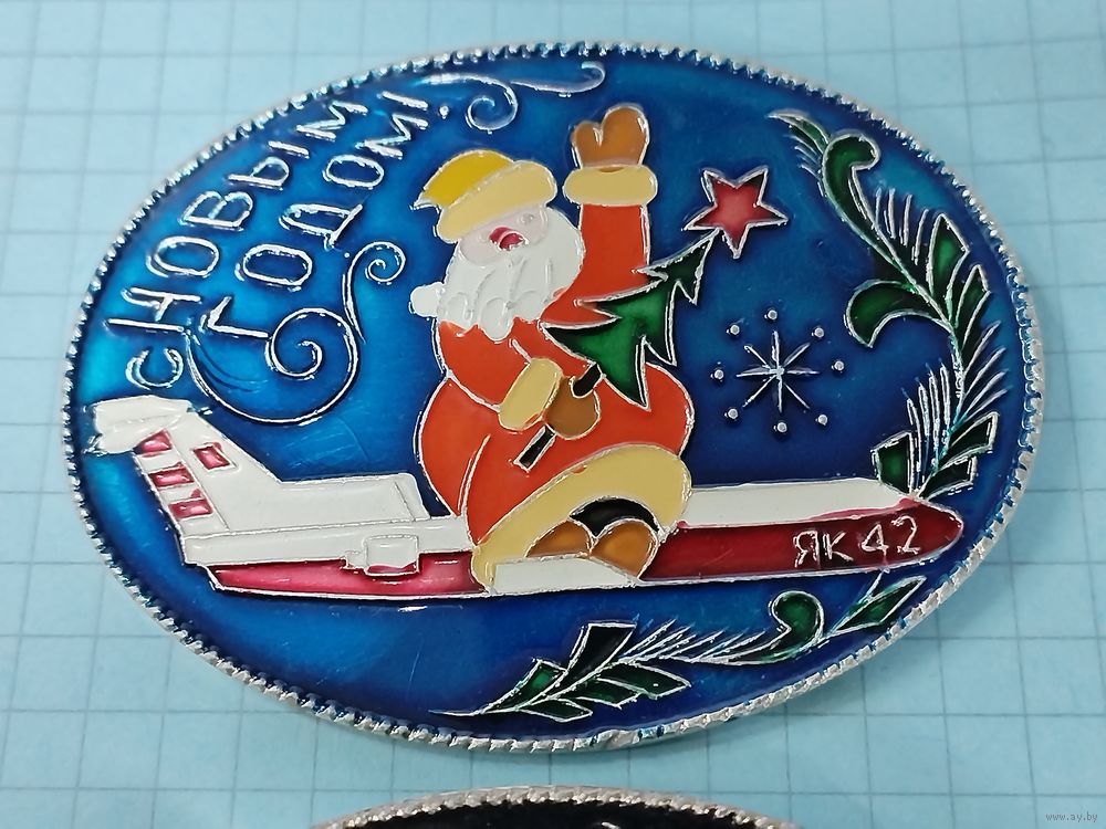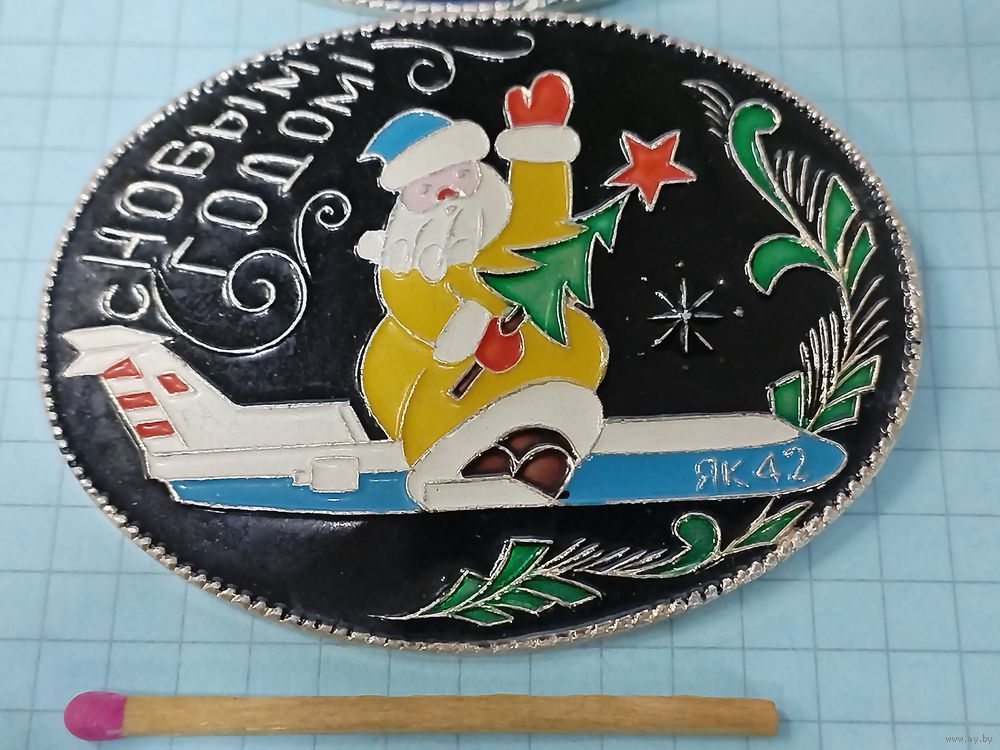 Значки. С Новым Годом! Дед Мороз на ЯК-42. цена за 1 шт.