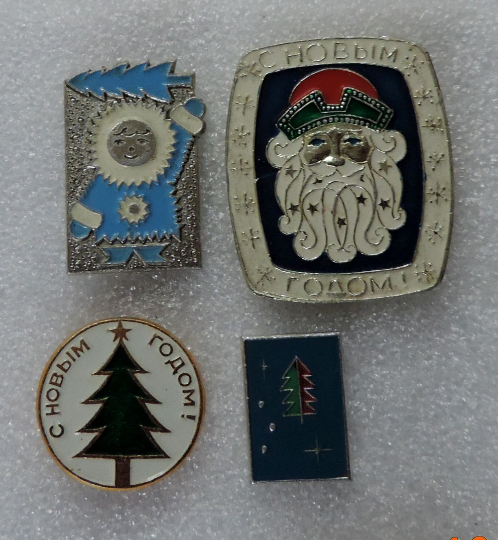 Значки "С Новым годом" СССР - 4 шт. Алюминий.