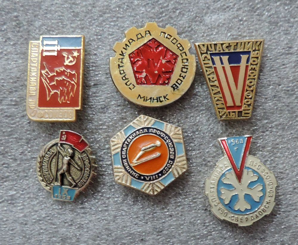 Значки "Спартакиада профсоюзов" Алюминий. - 6 шт.