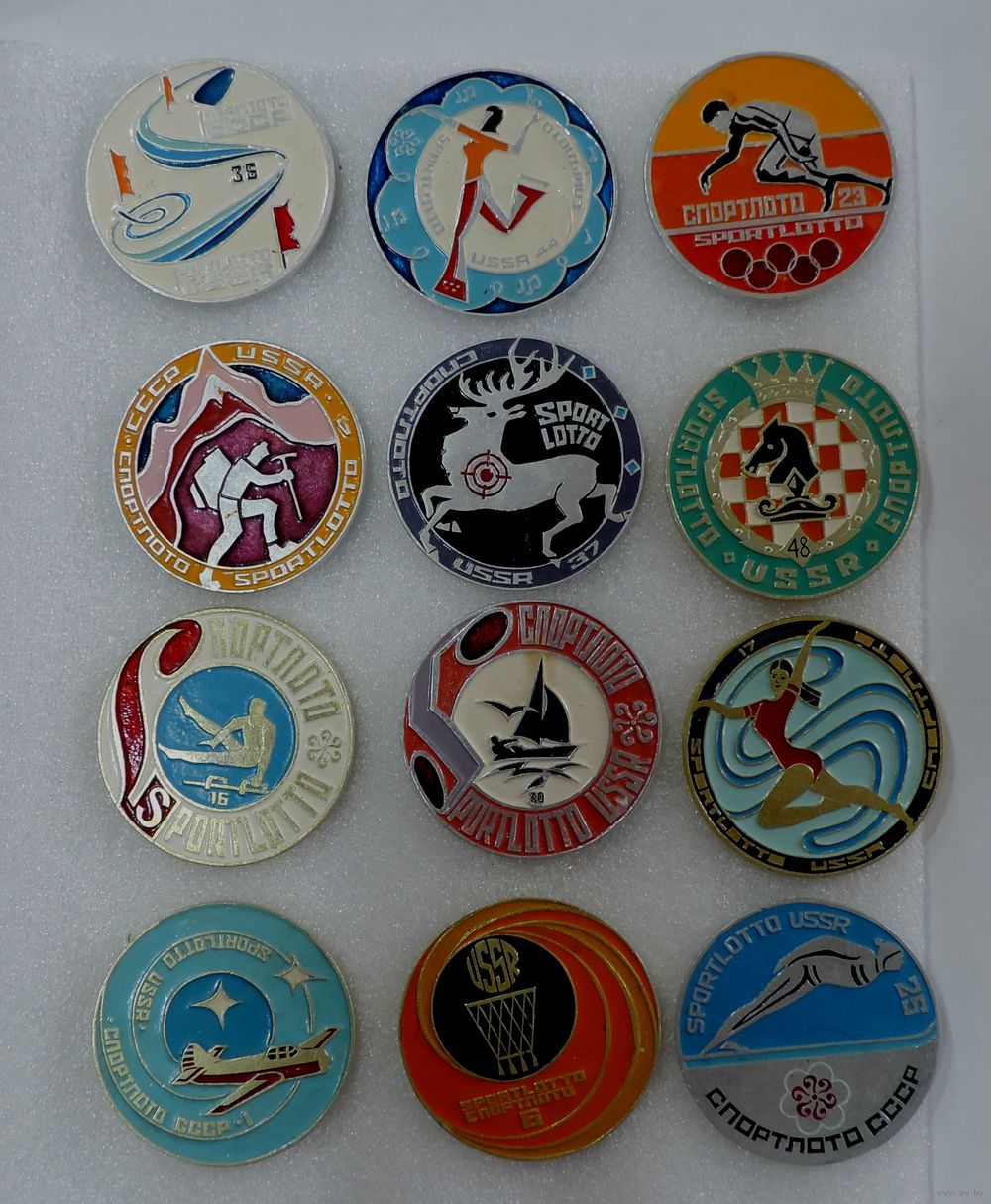 Значки "Спорт лото" СССР - 12 шт. Алюминий. Диаметр значка 4.5 см.