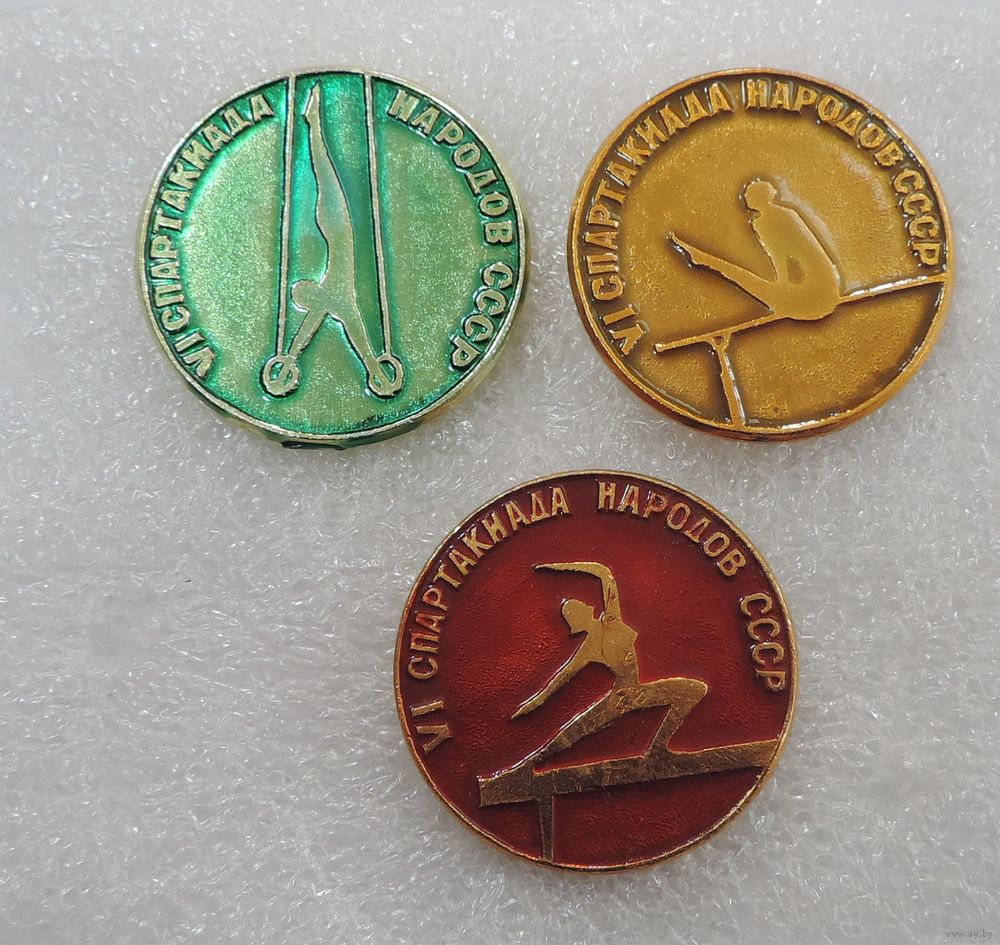 Значки спортивные "Гимнастика. 6 спартакиада народов СССР" - 3 шт. Алюминий.