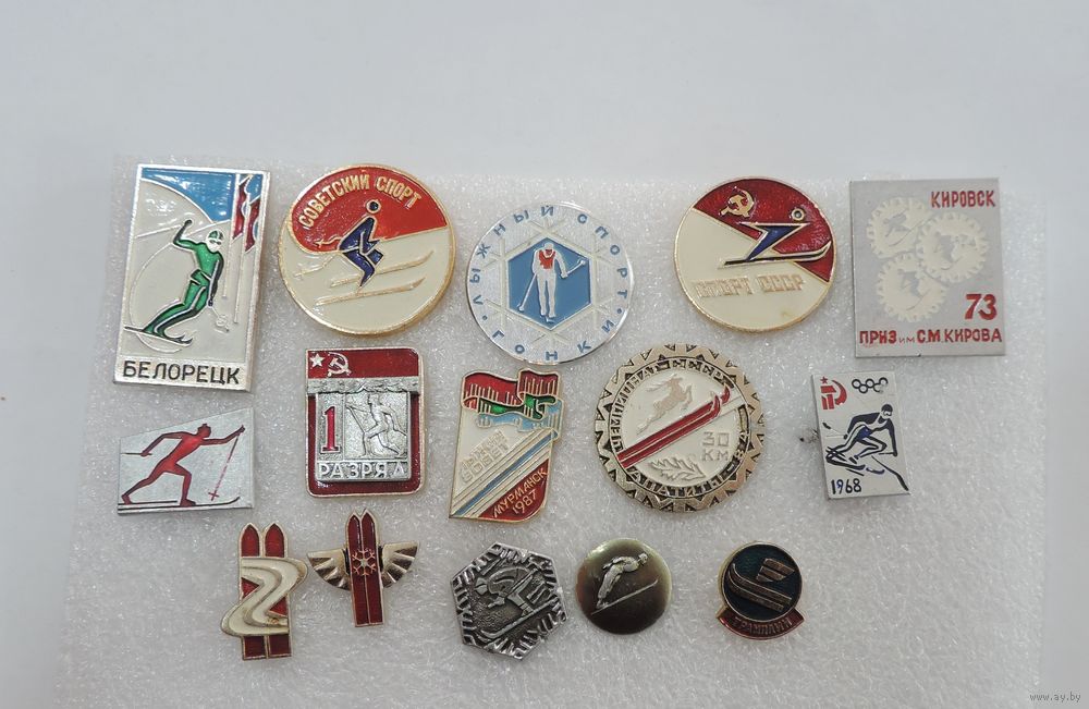 Значки спортивные "Лыжный спорт" СССР - 15 шт. Алюминий.