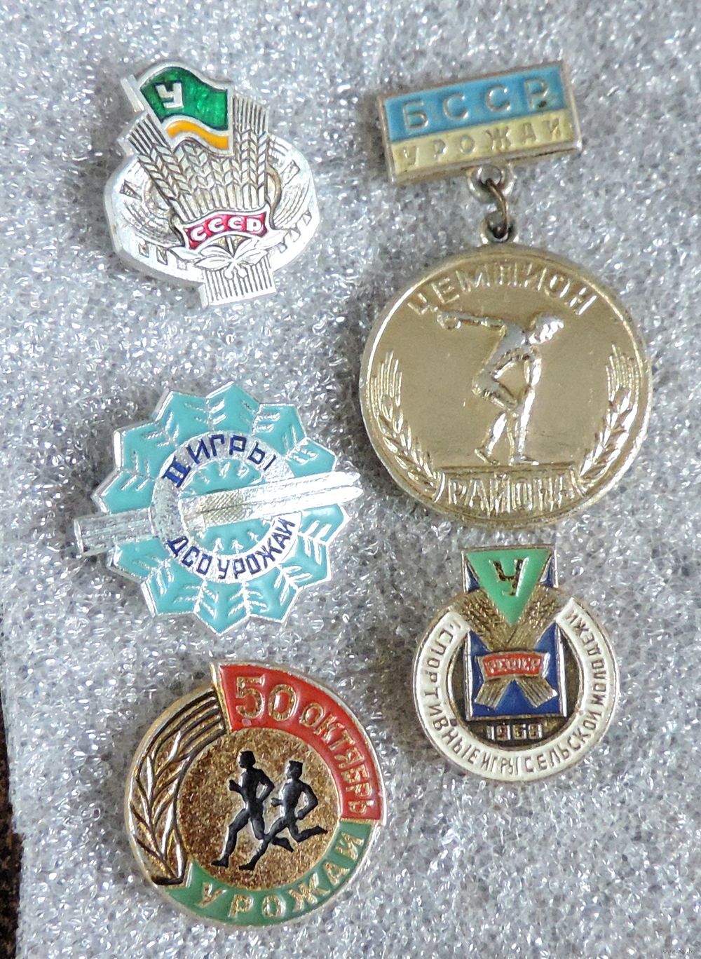 Значки спортивные "Урожай" СССР - 6 шт. Алюминий.