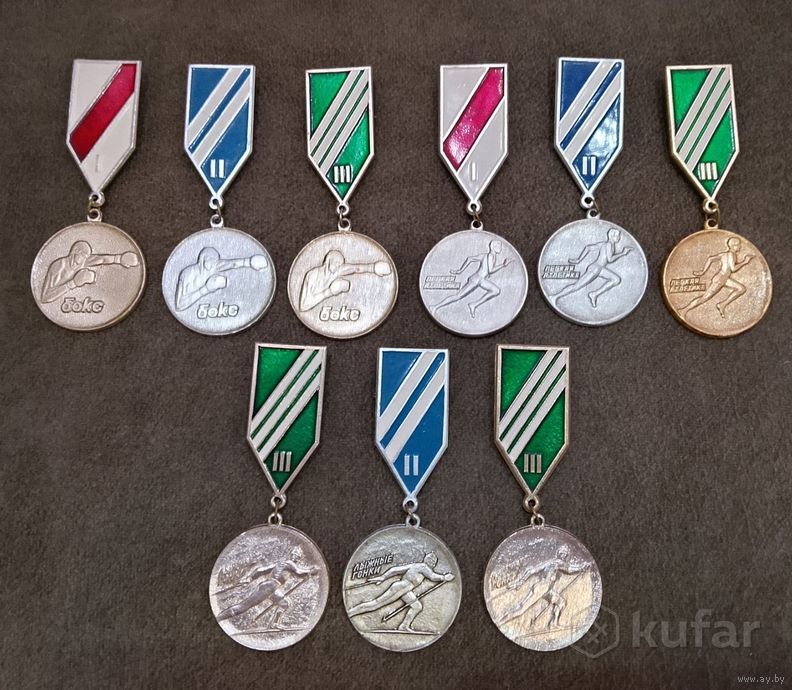Значки призёры спортивных дисциплин. 9 штук лотом. Район Ангарская.