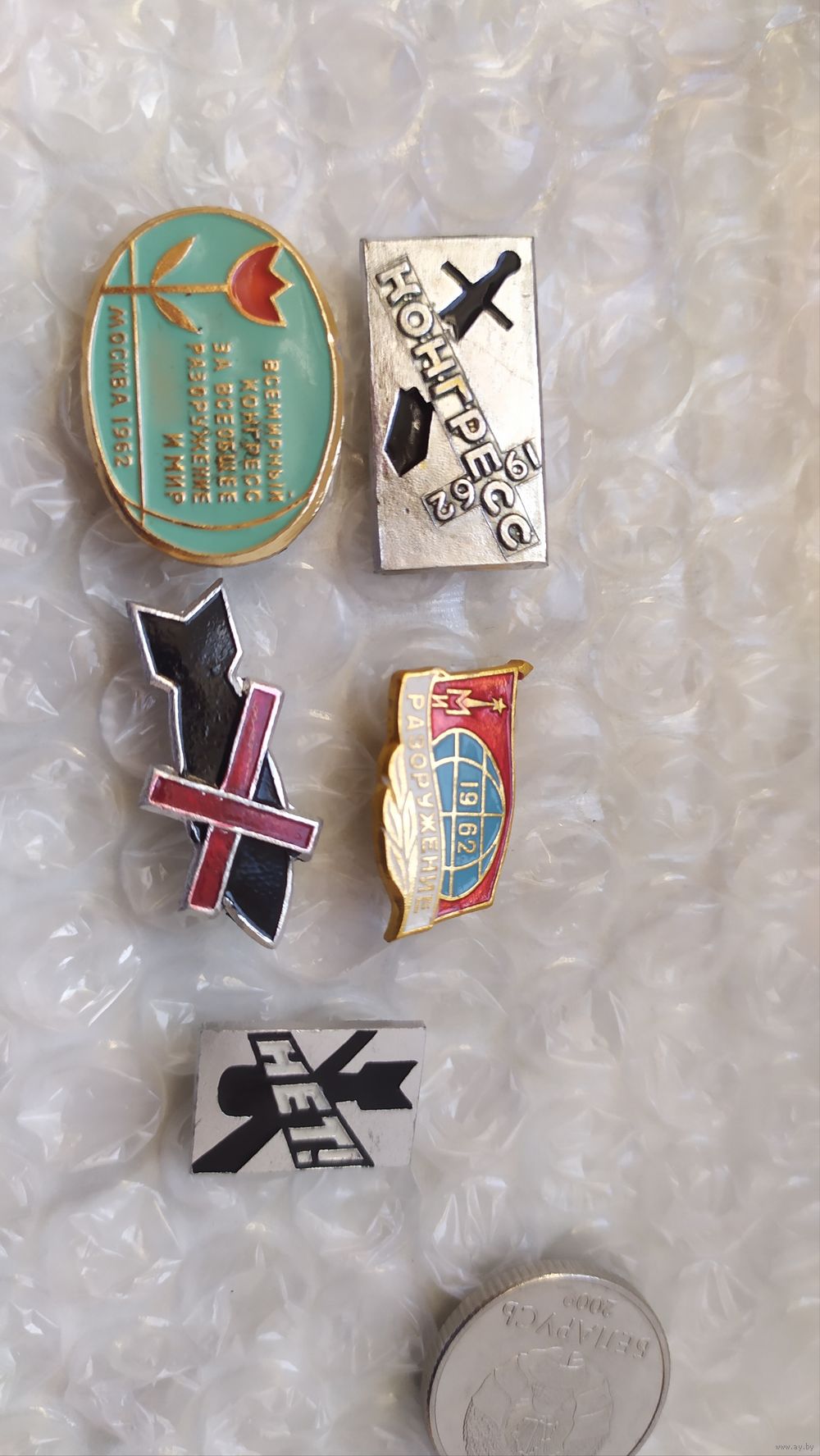 Значки СССР всемирный конгресс за разоружение 1962, 5 шт.