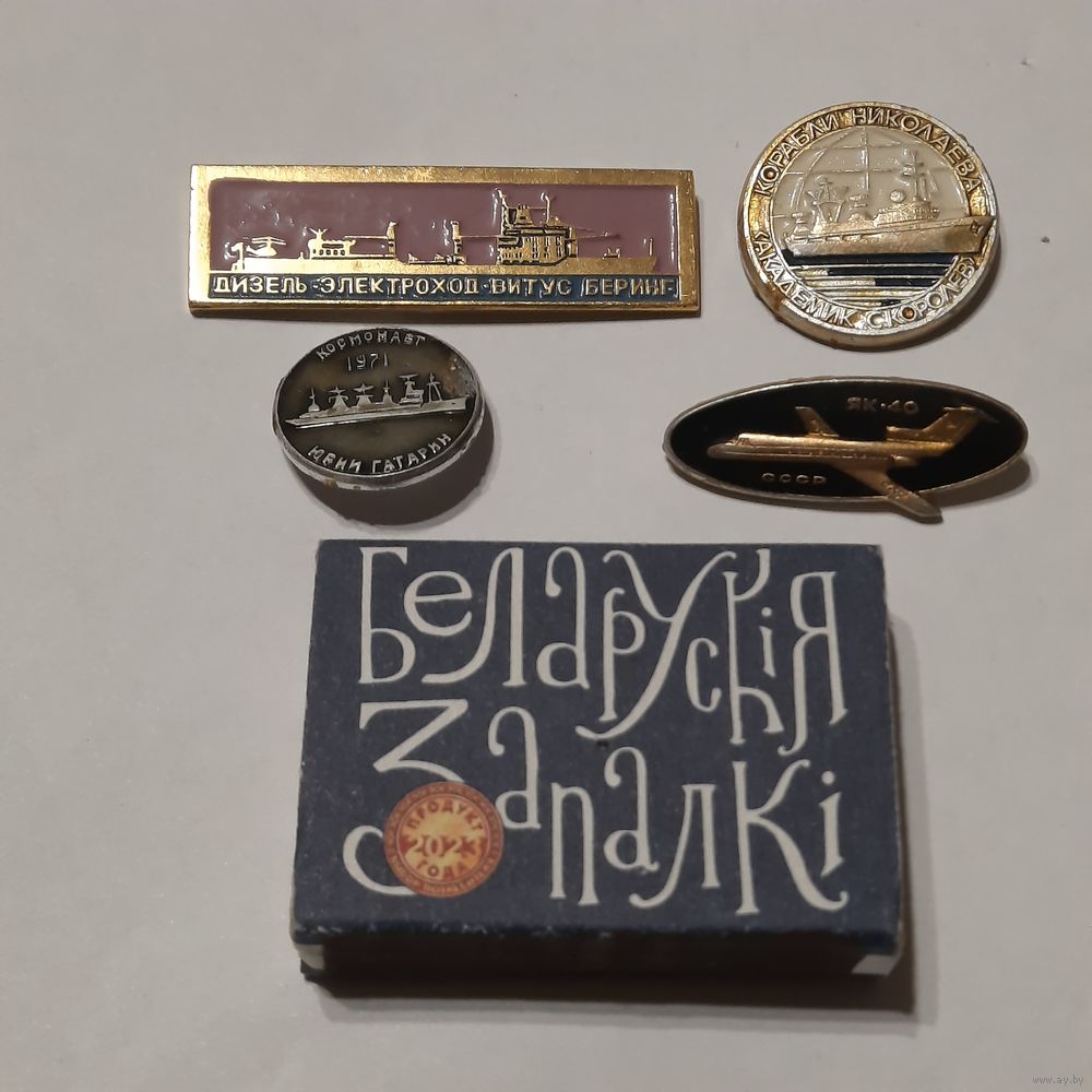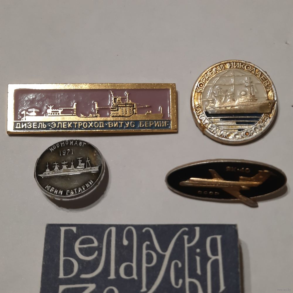 Значки: Три корабля, один самолёт. СССР. Одним лотом.