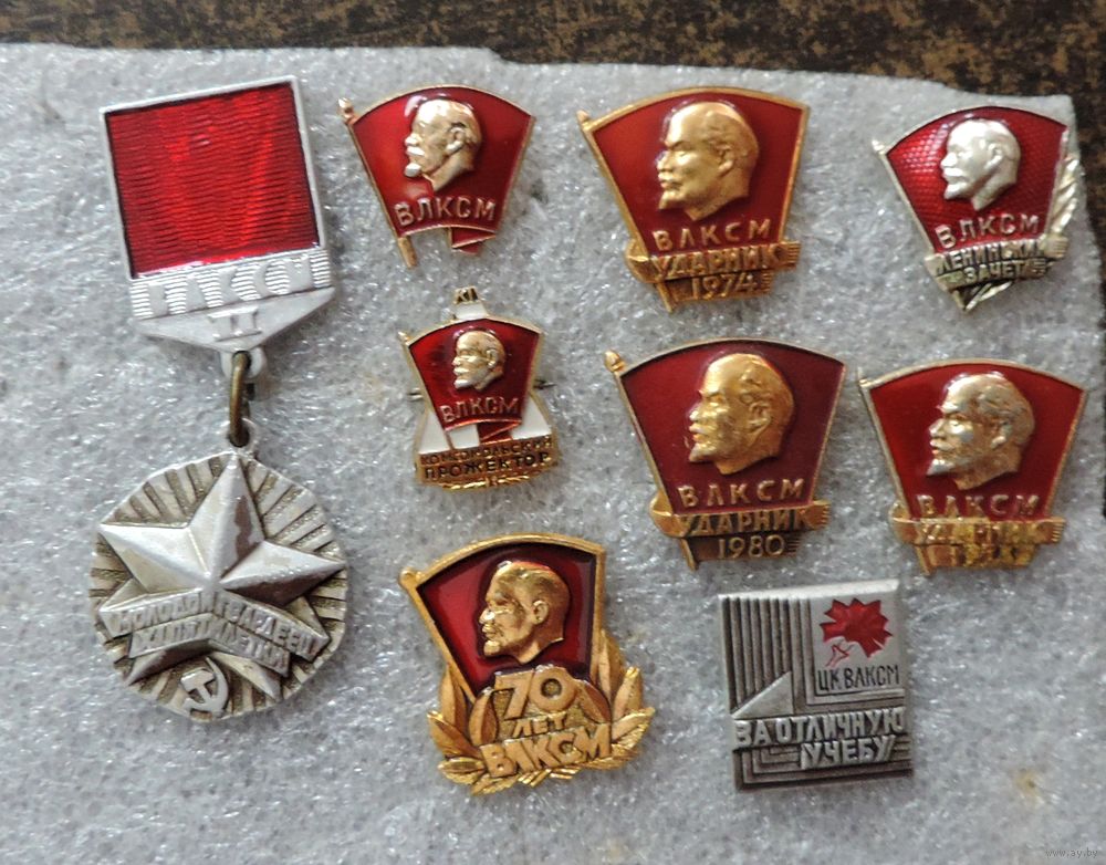 Значки "ВЛКСМ" - 9 шт. Алюминий.