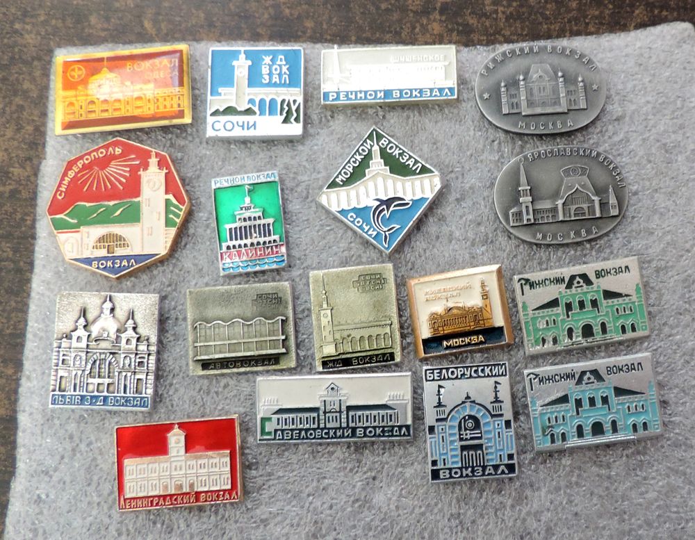 Значки "Вокзалы СССР" - 17 шт. Алюминий.