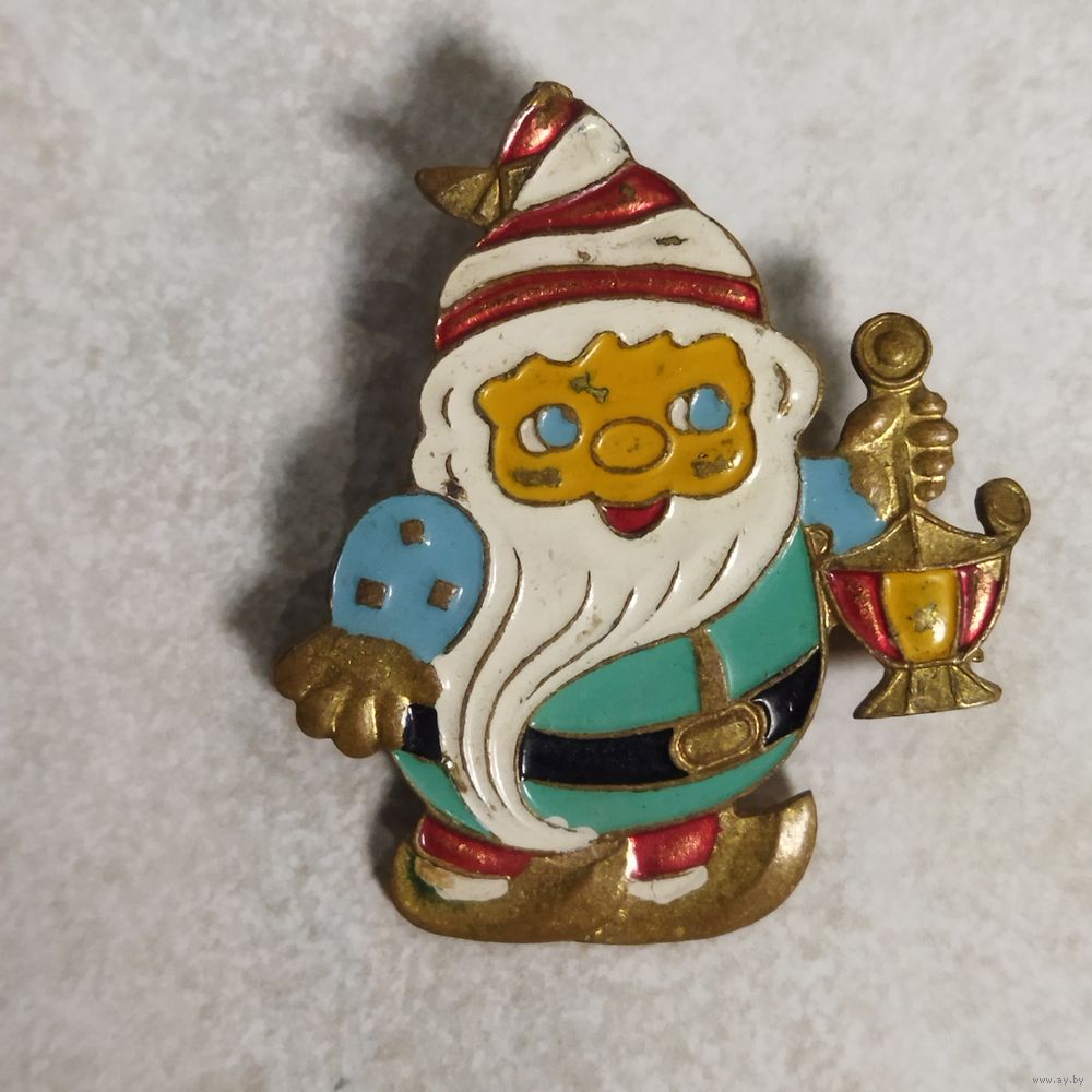 Значок. Брошь. Гном с фонариком. Тяжёлый металл. Клеймо МК7.