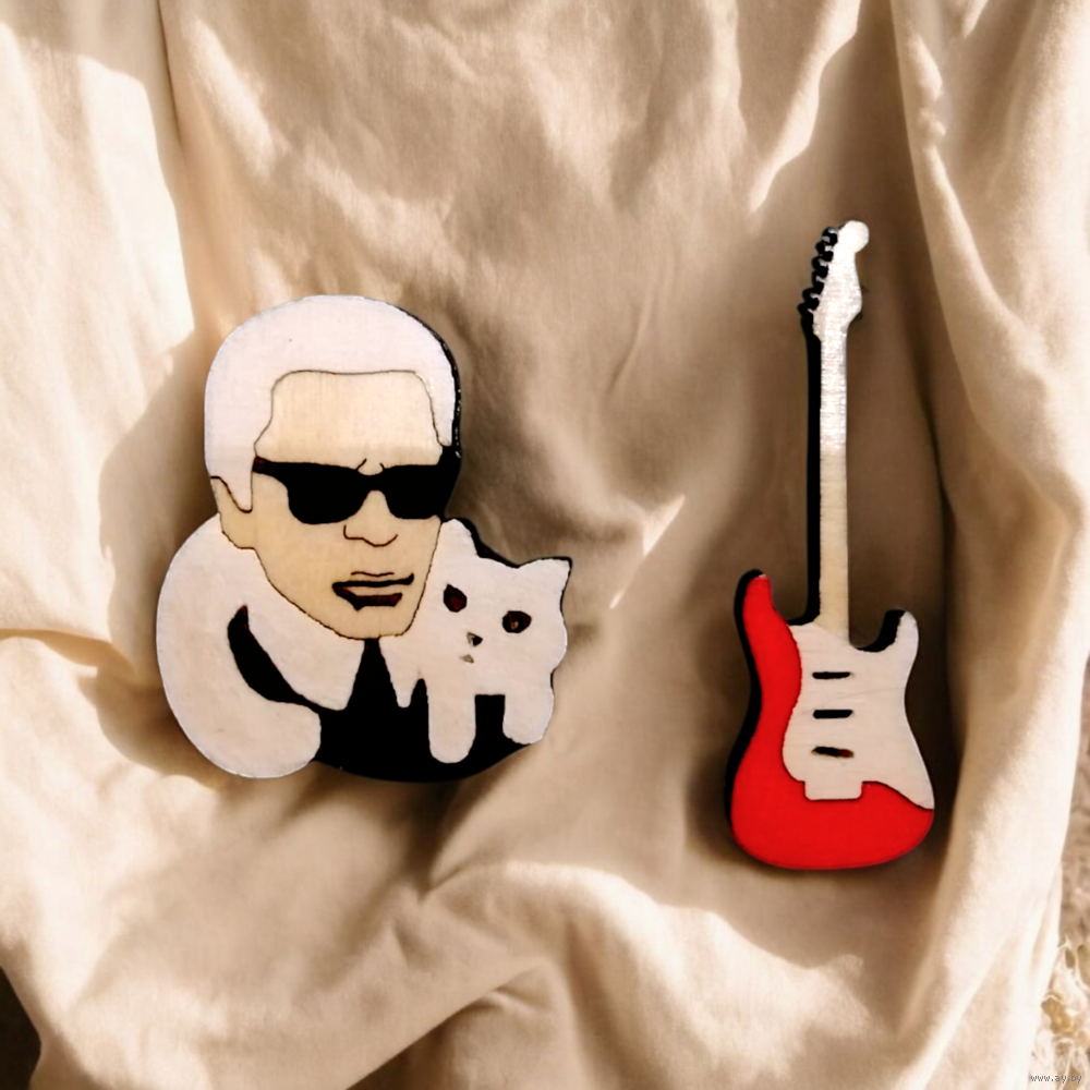 Значки-Броши: Карл Лагерфельд / Karl Lagerfeld; Басс Гитара.