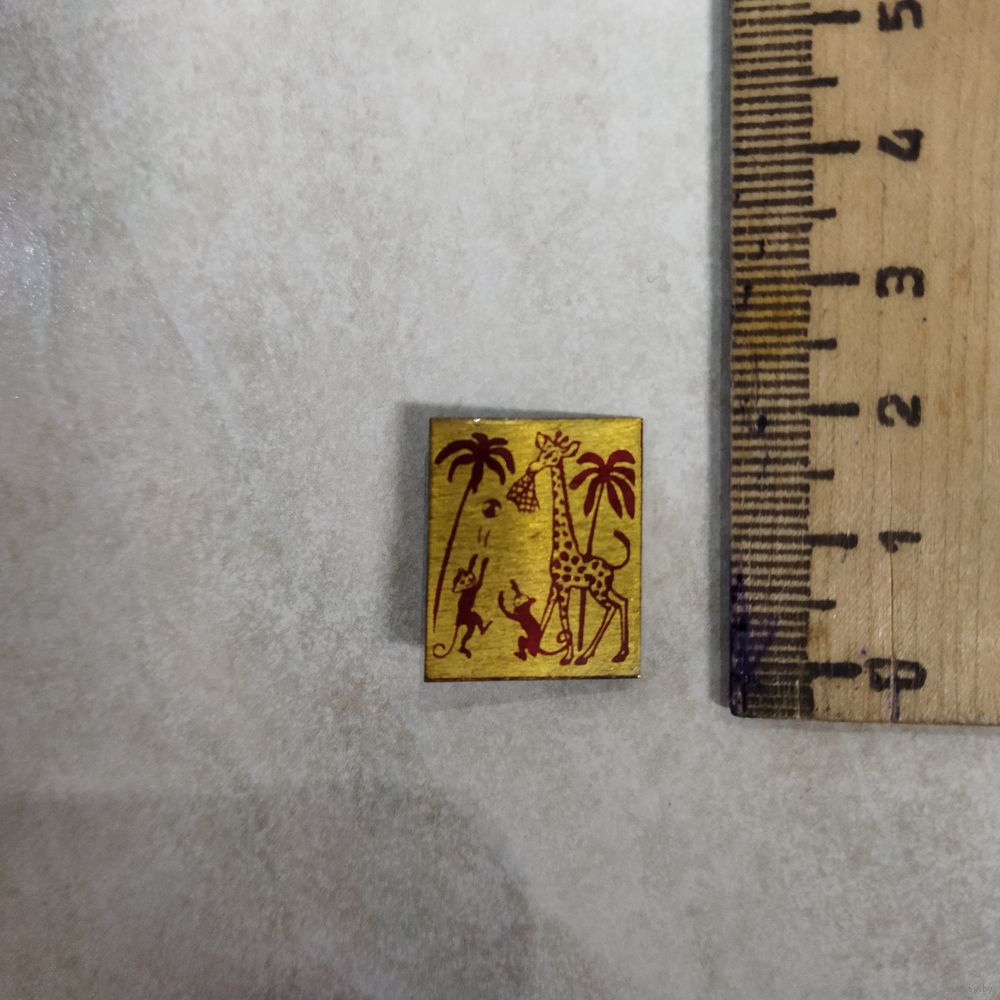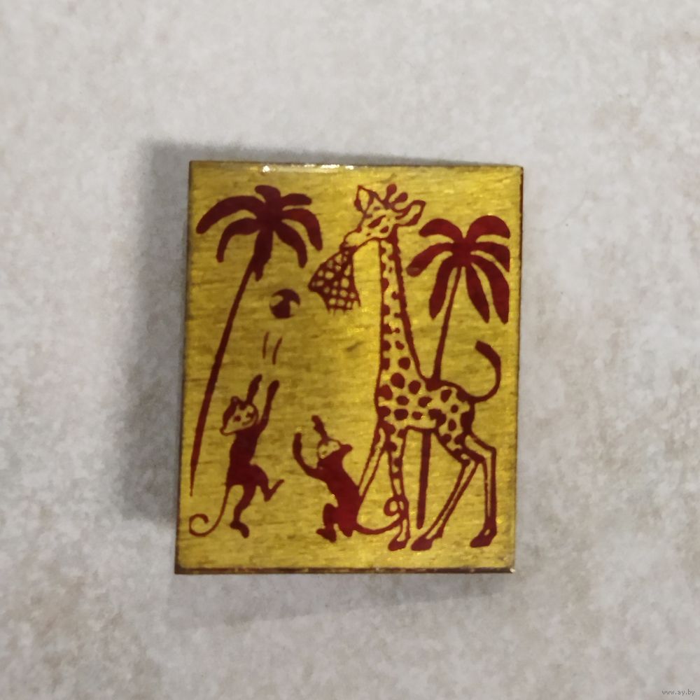 Значок детский. Ретро СССР. Жираф, обезьянки, пальмы. Баскетбол.