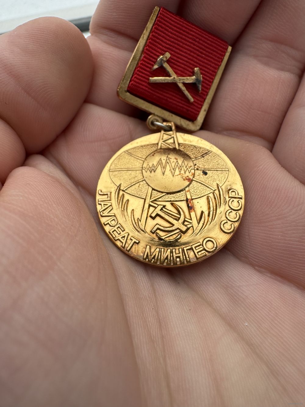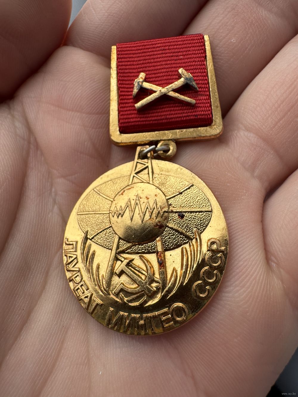 Значок. Лауреат МинГео СССР. За вклад в научно-технический прогресс в геологии. ЛМД, Тяжёлый