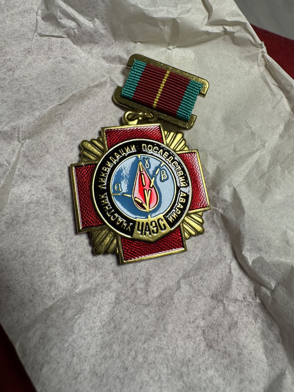 Значок ЛЮКС.Участнику ликвидации последствий аварии на ЧАЭС. Люкс в Родной Упаковке.Тяжёлый