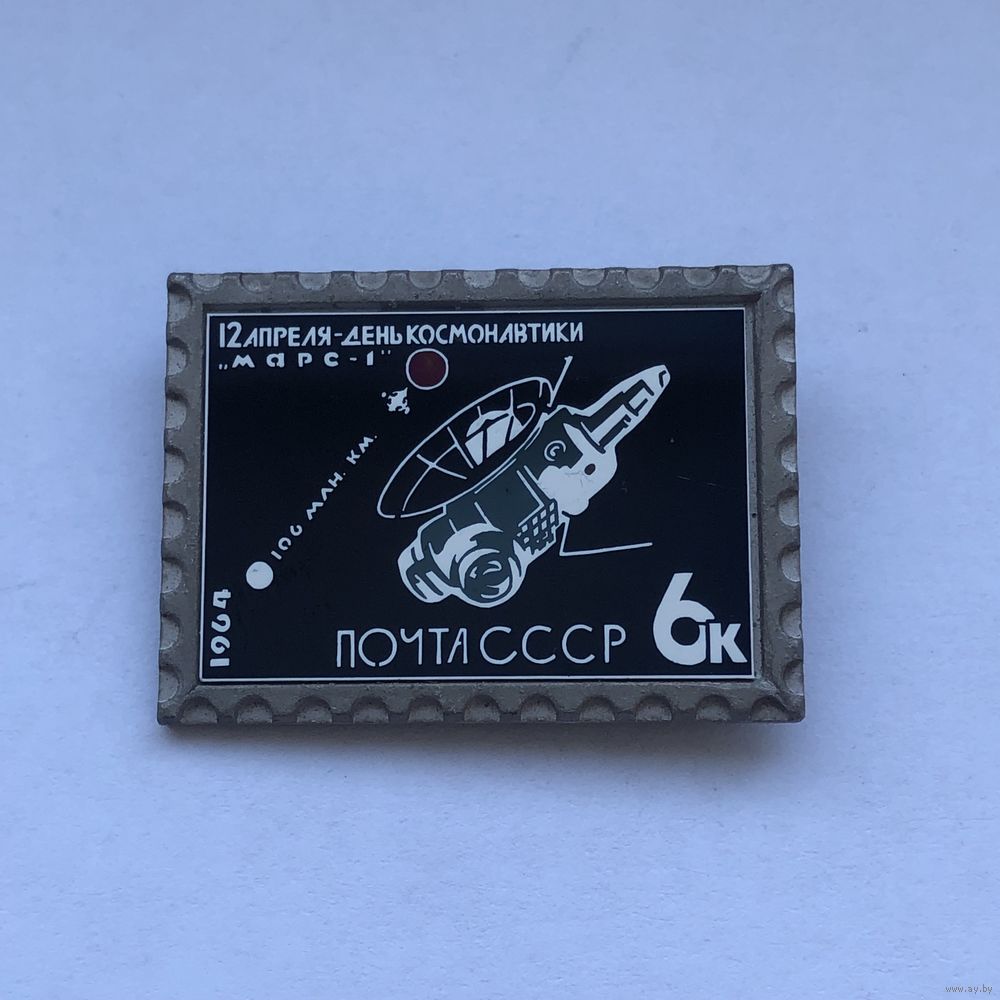 Значок марка 12 апреля - День космонавтики Марс-1, зеркальный