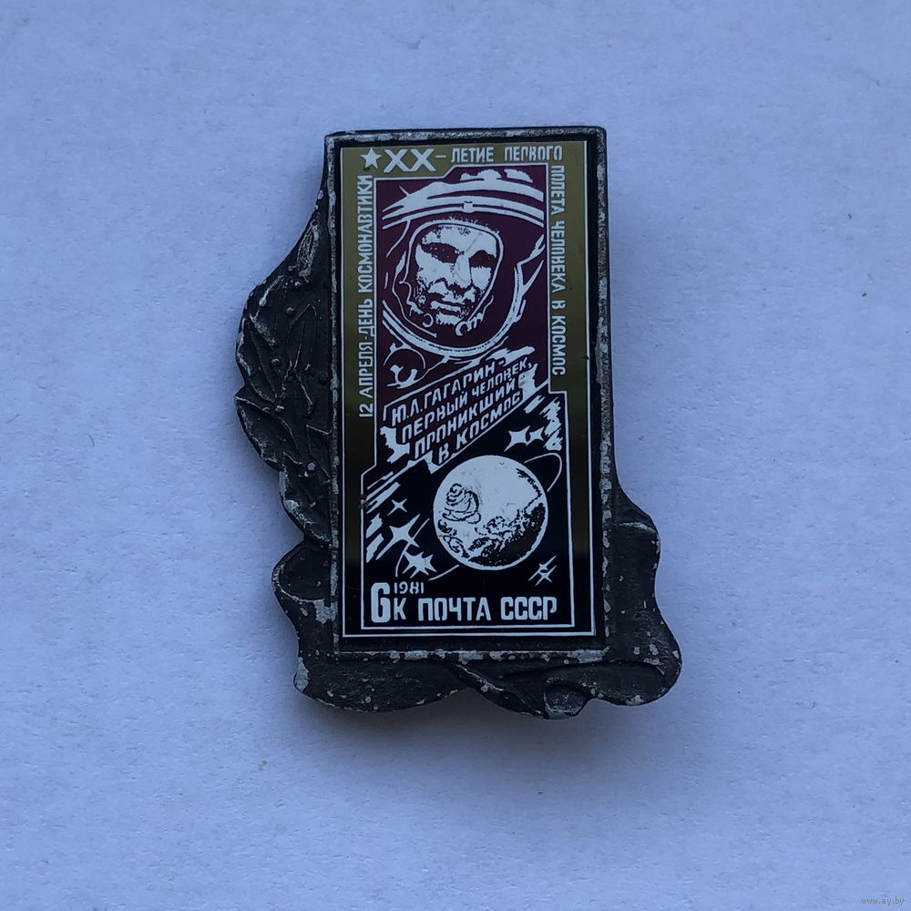 Значок марка 20-летие первого полета человека в космос, зеркальный