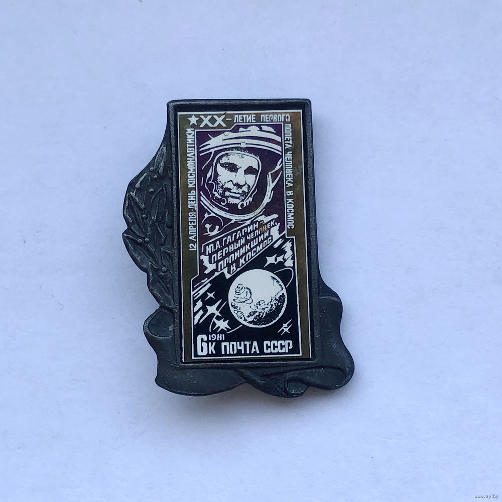 Значок марка 20-летие первого полета человека в космос зеркальный