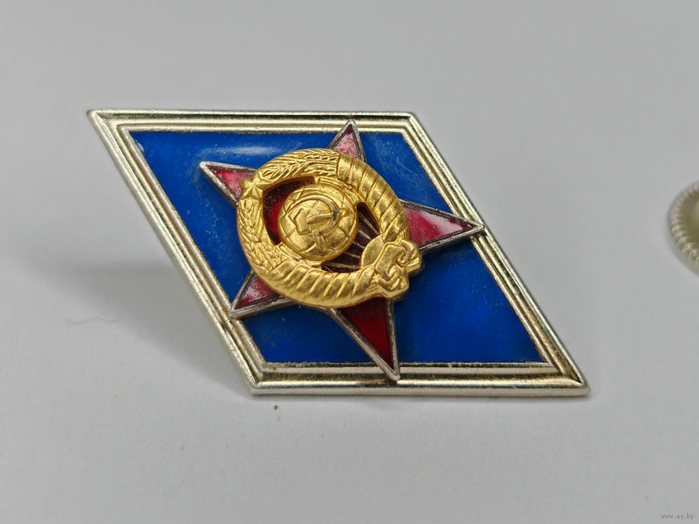 Значок Нагрудный знак ромб СССР Значок за окончание военного ВУЗа. С рубля