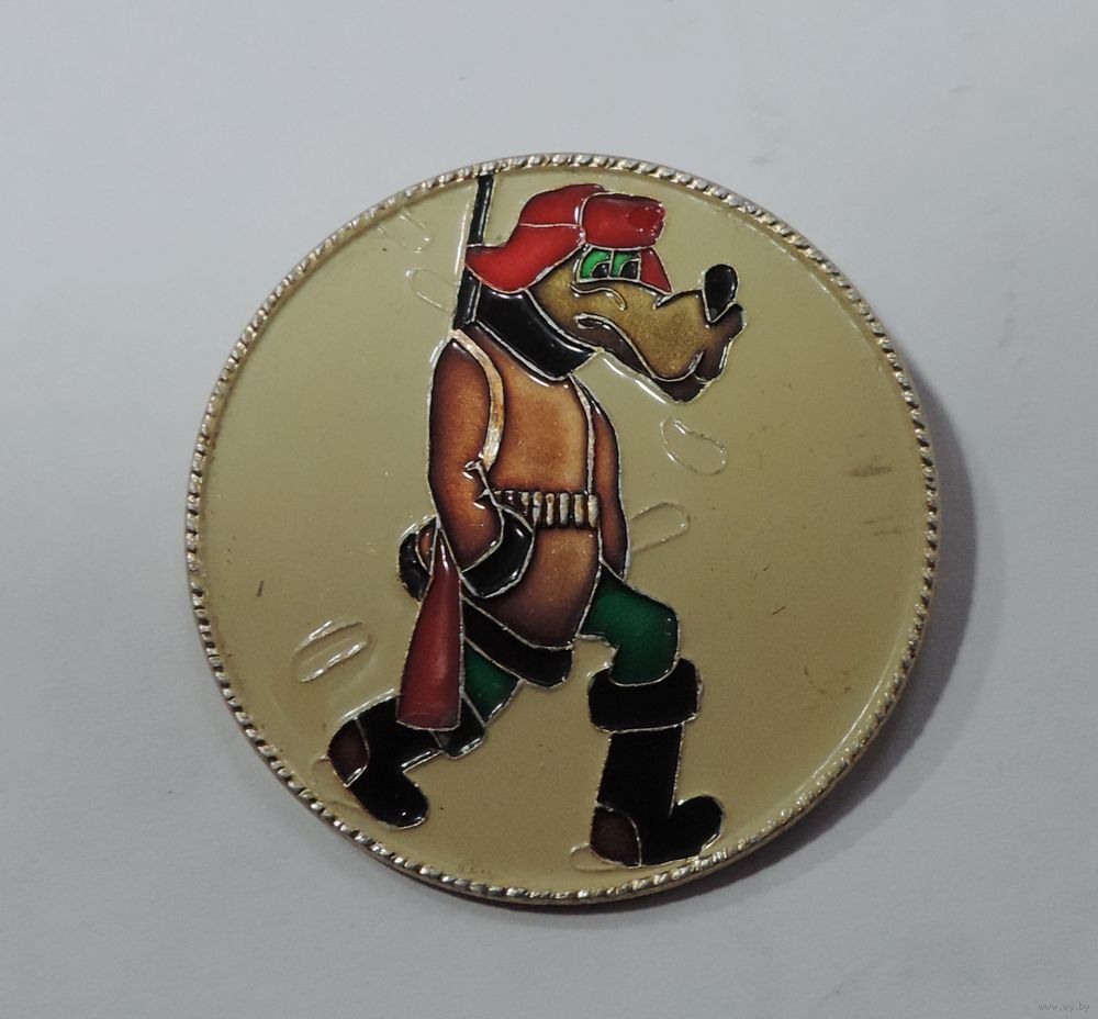 Значок "Ну погоди" СССР. Алюминий. Диаметр 4.5 см.