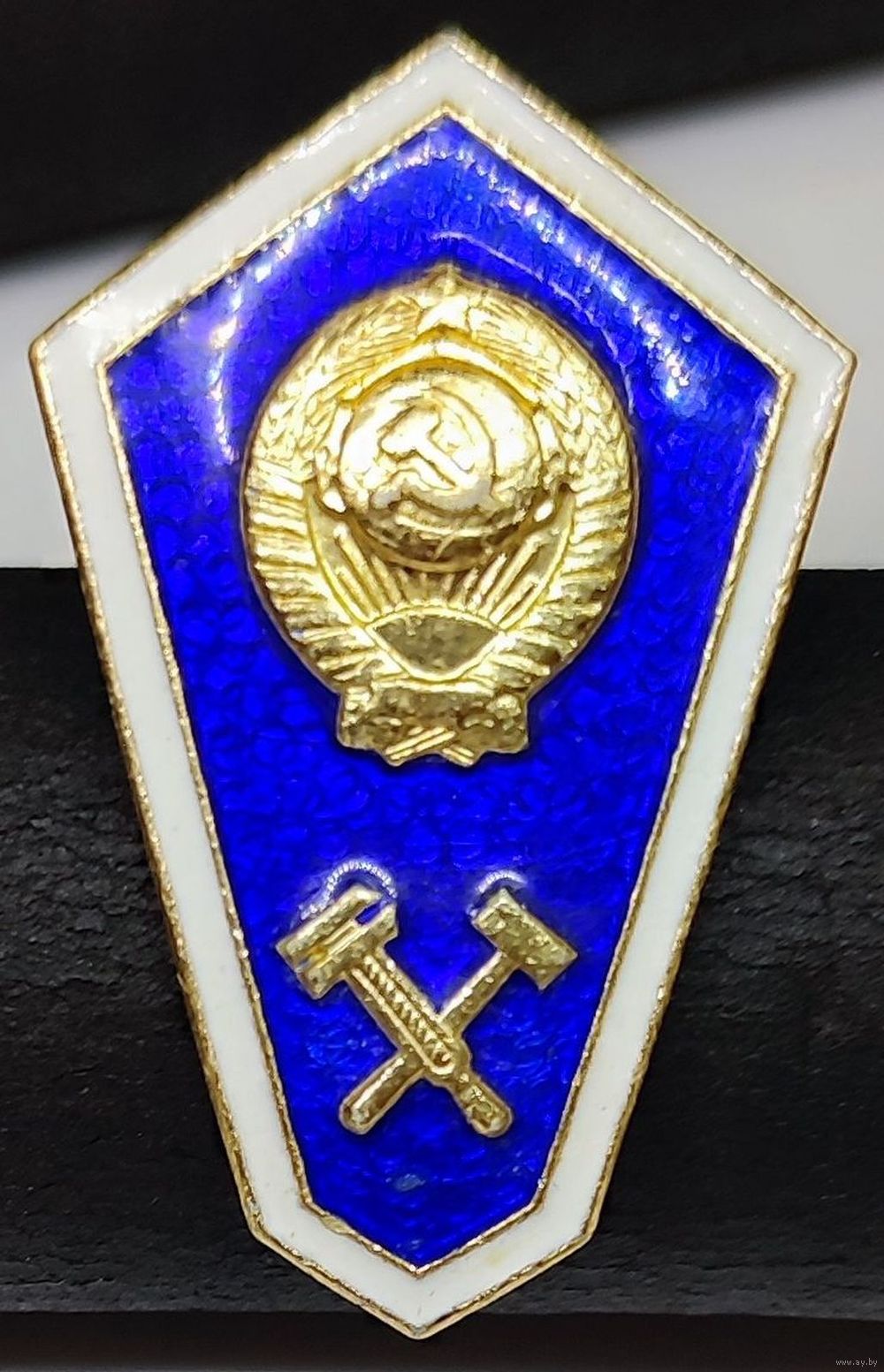 Значки, выдаваемые за окончание техникума в СССР, как правило, были знаками об окончании учебного заведения и могли иметь различные варианты оформления, в зависимости от конкретного техникума и года выпуска. Обычно они включали в себя название техникума, год окончания, и могли содержать герб СССР или другие символы. Значок для лиц, окончивших советские средние специальные учебные заведения, имеет форму слегка выпуклого шестиугольного щита, покрытого эмалью синего цвета. Края шестиугольного щита окаймлены полосками белой эмали обрамлённые золотой окантовкой. В верхней части знака, на фоне эмали, с помощью винта, штифта и гайки с шайбой укреплено изображение герба СССР, а в нижней части расположена эмблема среднего специального учебного заведения. На обратной стороне знака имеется винт с гайкой для прикрепления знака к одежде (гайка потерялась)