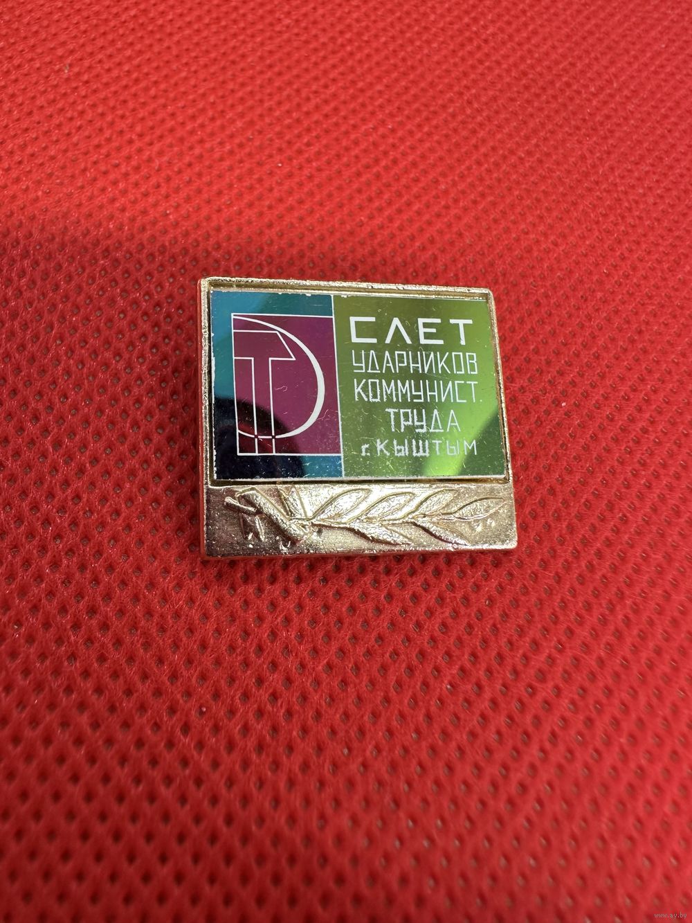 Значок Слет ударников Коммунистического труда. г. Кыштым. Ситалл.