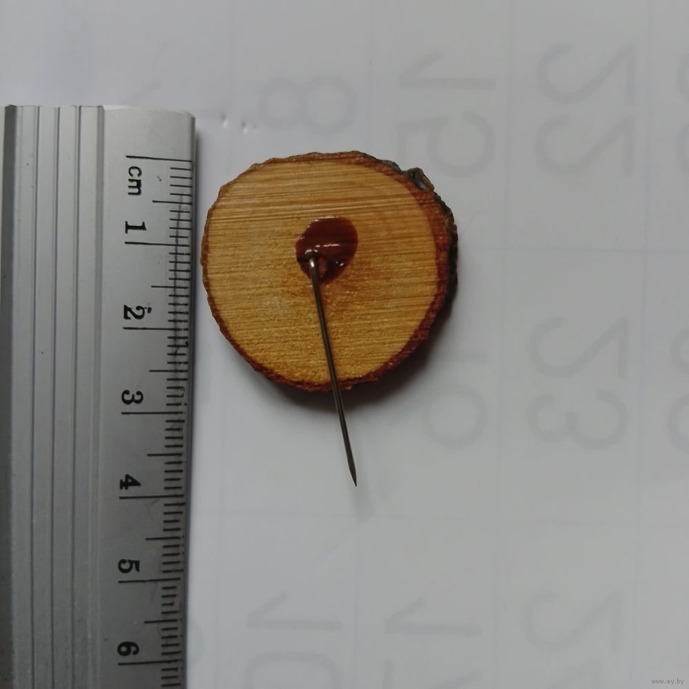Значок выставки в Минске в 1981 году. Из дерева, в форме среза ствола