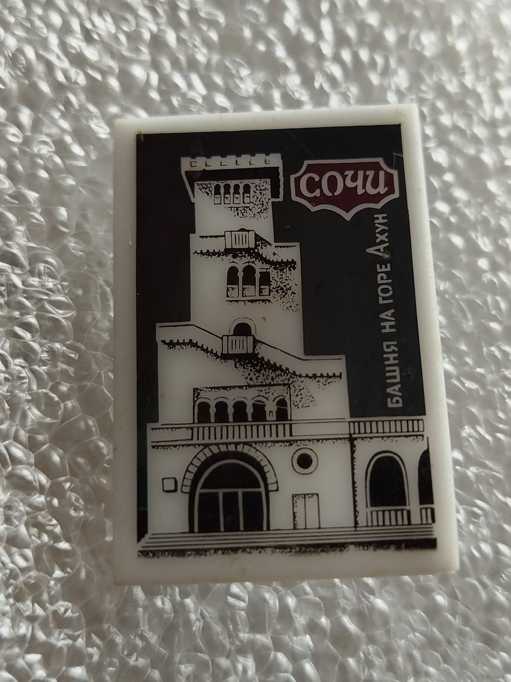 Значок. Сочи. Башня на горе Ахун. Ситалл, пластик. #-III-03/2