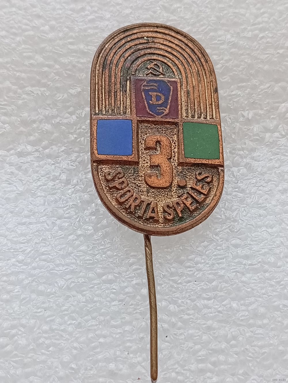 Значок спортивный. Латвийская ССР. Спартакиада. Sporta spelis. Тяжёлый металл. Эмали.#-VII-03