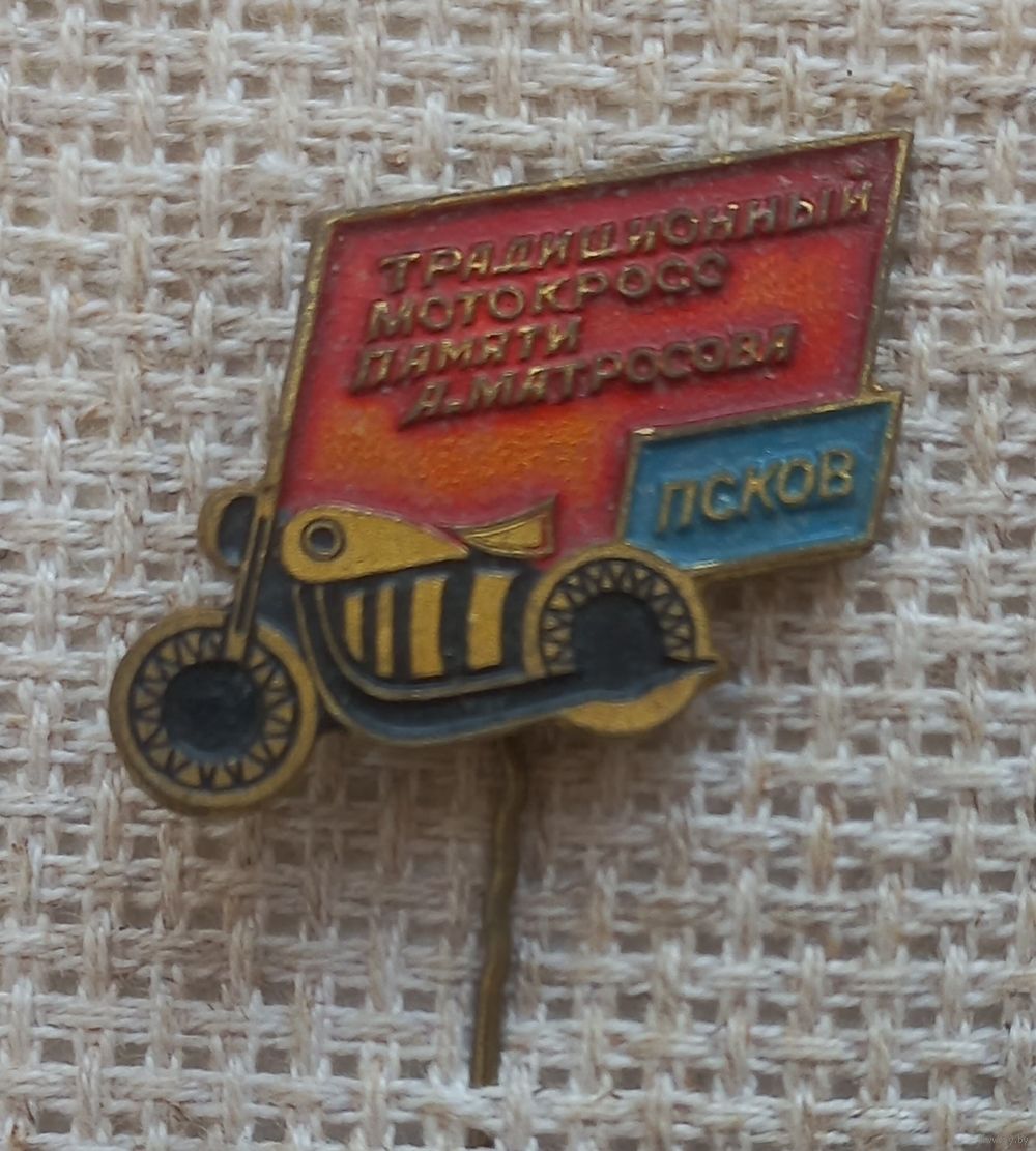 Значок. Традиционный мотокросс памяти А. Матросова. Псков. СССР.