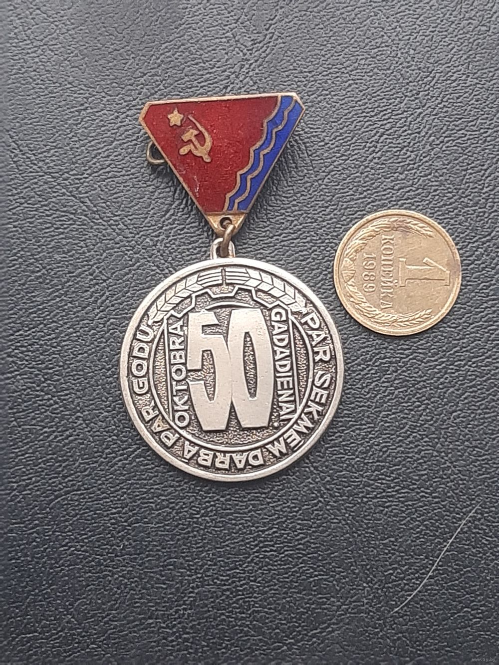 Значок тяжелый, эмали. 50 летие. Латвия
