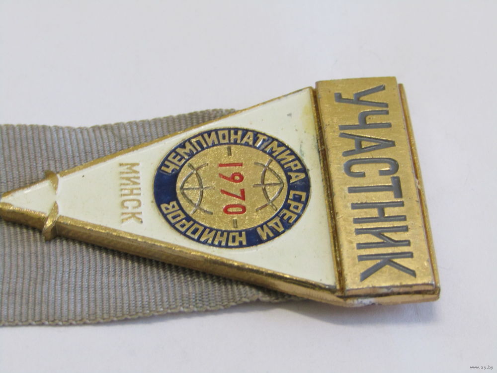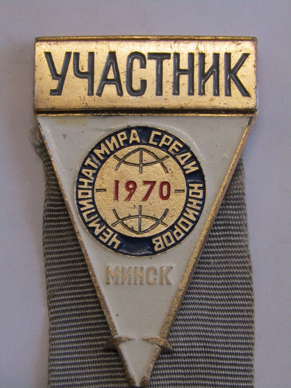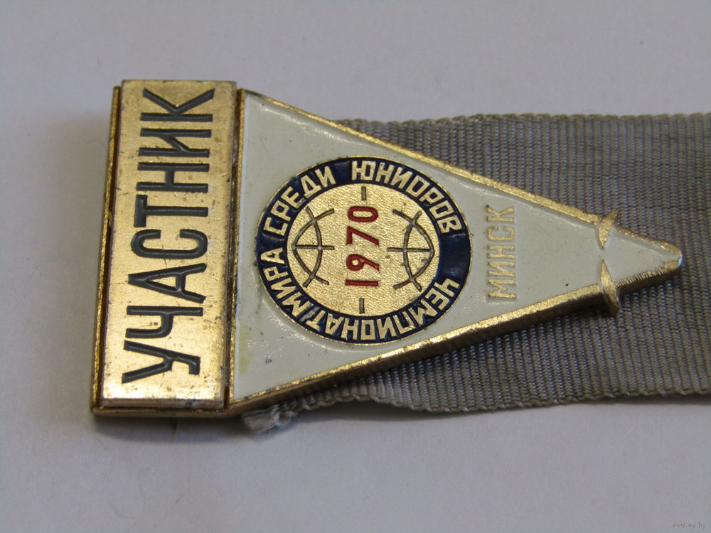 Значок. Знак. "Участник". "Чемпионат мира среди юниоров". "Минск". "Спорт". "Хоккей". СССР 1970 г. .