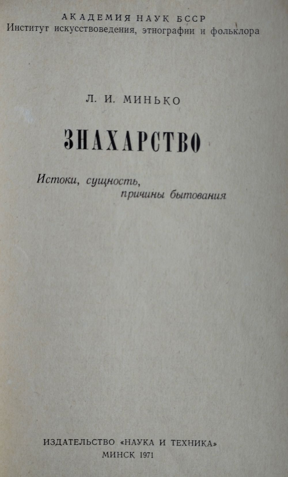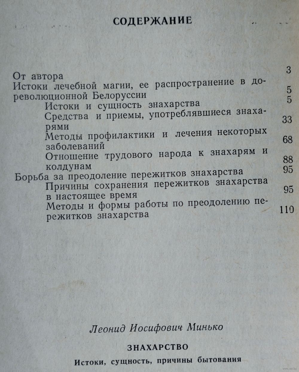 120 стр. В этой работе автор прослеживает истоки, сущность и причины бытования знахарства и как с экстрасенсами боролись в советские времена..... Содержание: 1. Истоки лечебной магии, ее распространение в дореволюционной Беларуси (Истоки и сущность знахарства. Средства и приемы, употреблявшиеся знахарями. Методы профилактики и лечения некоторых заболеваний. Отношение трудового народа к знахарям и колдунам). 2. Борьба за преодоление пережитков знахарства (Причины сохранения пережитков знахарства в настоящее время. Методы и формы работы по преодолению пережитков знахарства).
