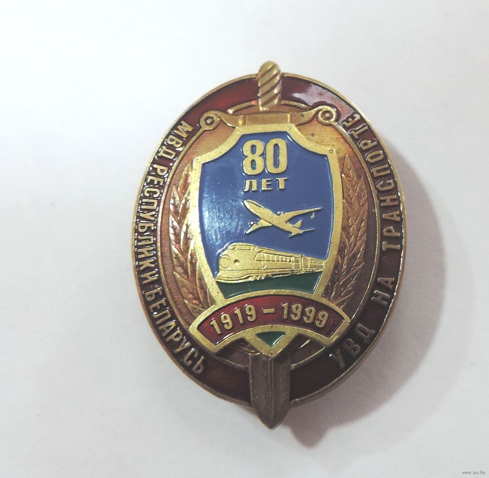Знак "Беларусь 80 лет МВД. УВД на транспорте". Тяжёлый.