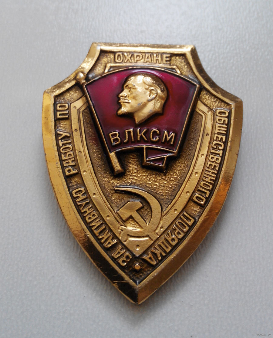 Знак. ЦК ВЛКСМ. За активную работу по охране общественного порядка #0170