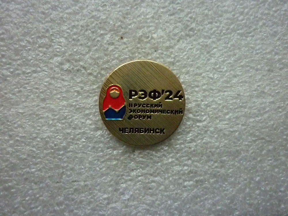 Знак фрачный. II Русский экономический форум. Челябинск. РЭФ'24. Матрешка. Латунь цанга.
