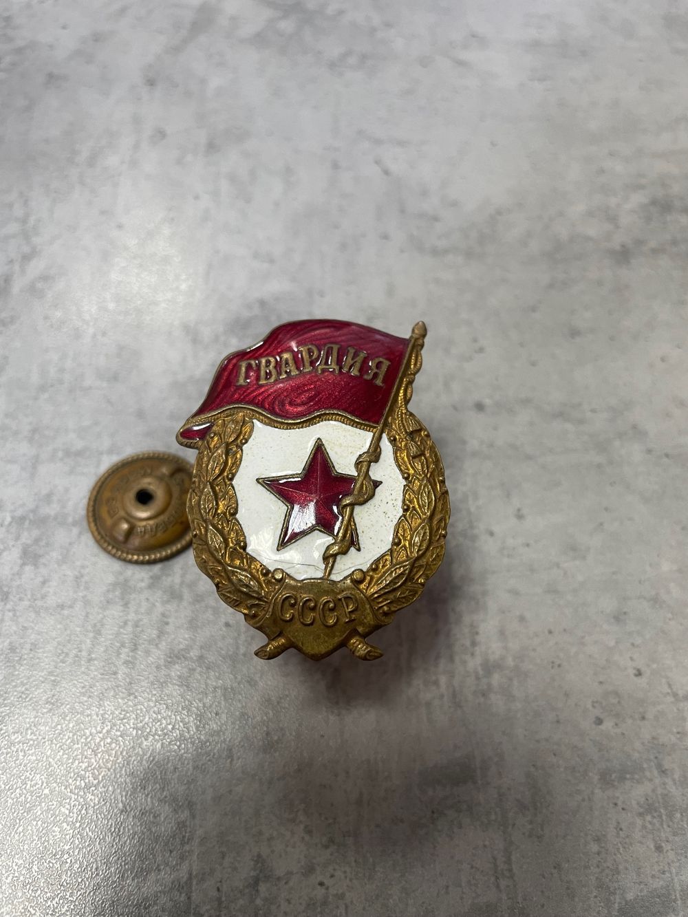 Знак ГВАРДИЯ СССР Тяжёлый Медная гайка Завод Победа Москва