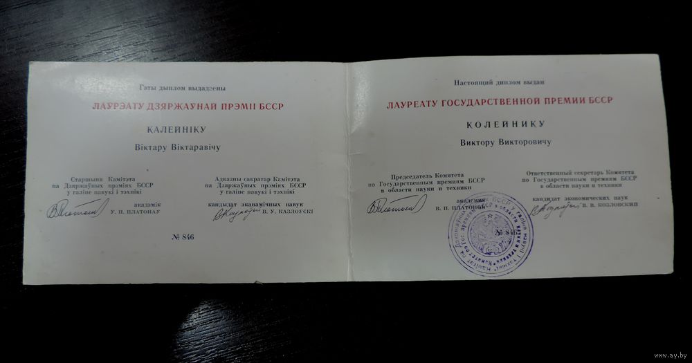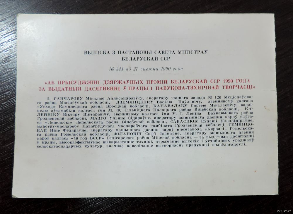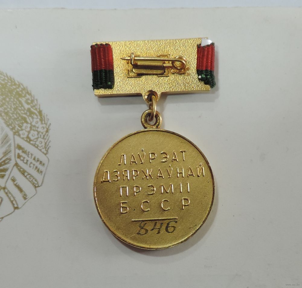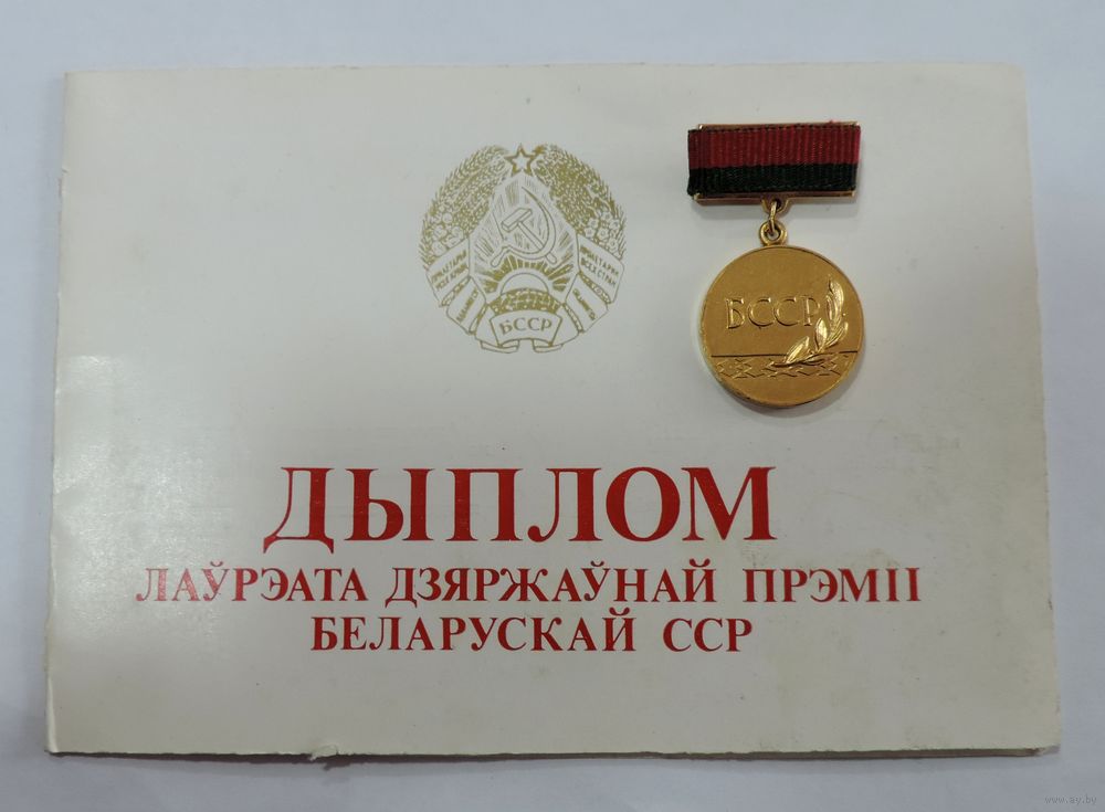 Знак "Лаурэата дзяржаунай прэмii БССР" (Лауреат государственной премии БССР) документом.