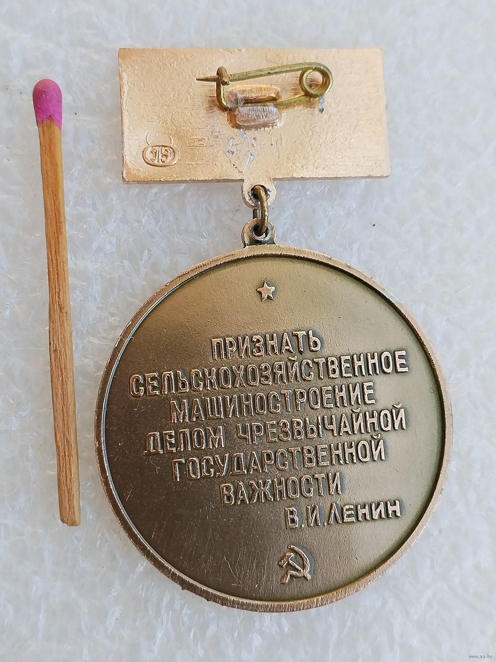 Знак. Ленинскому декрету о сельхозмашиностроению 50 лет. ПЭ