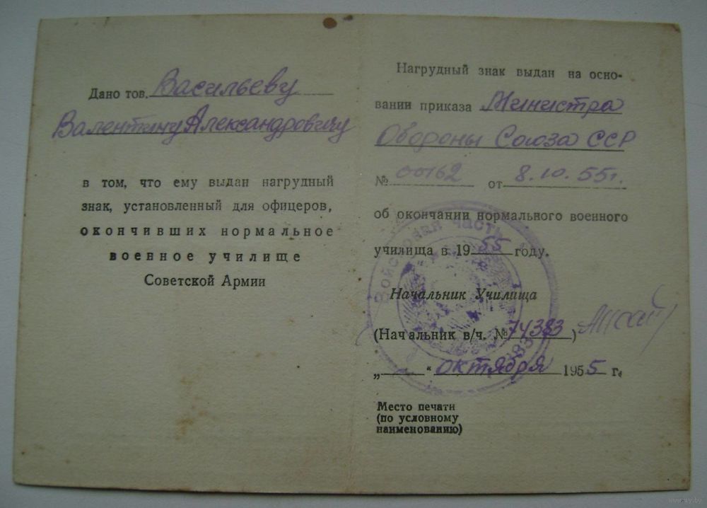 Знак об окончании военного училища СССР , на документах, отличный знак в коллекцию !
