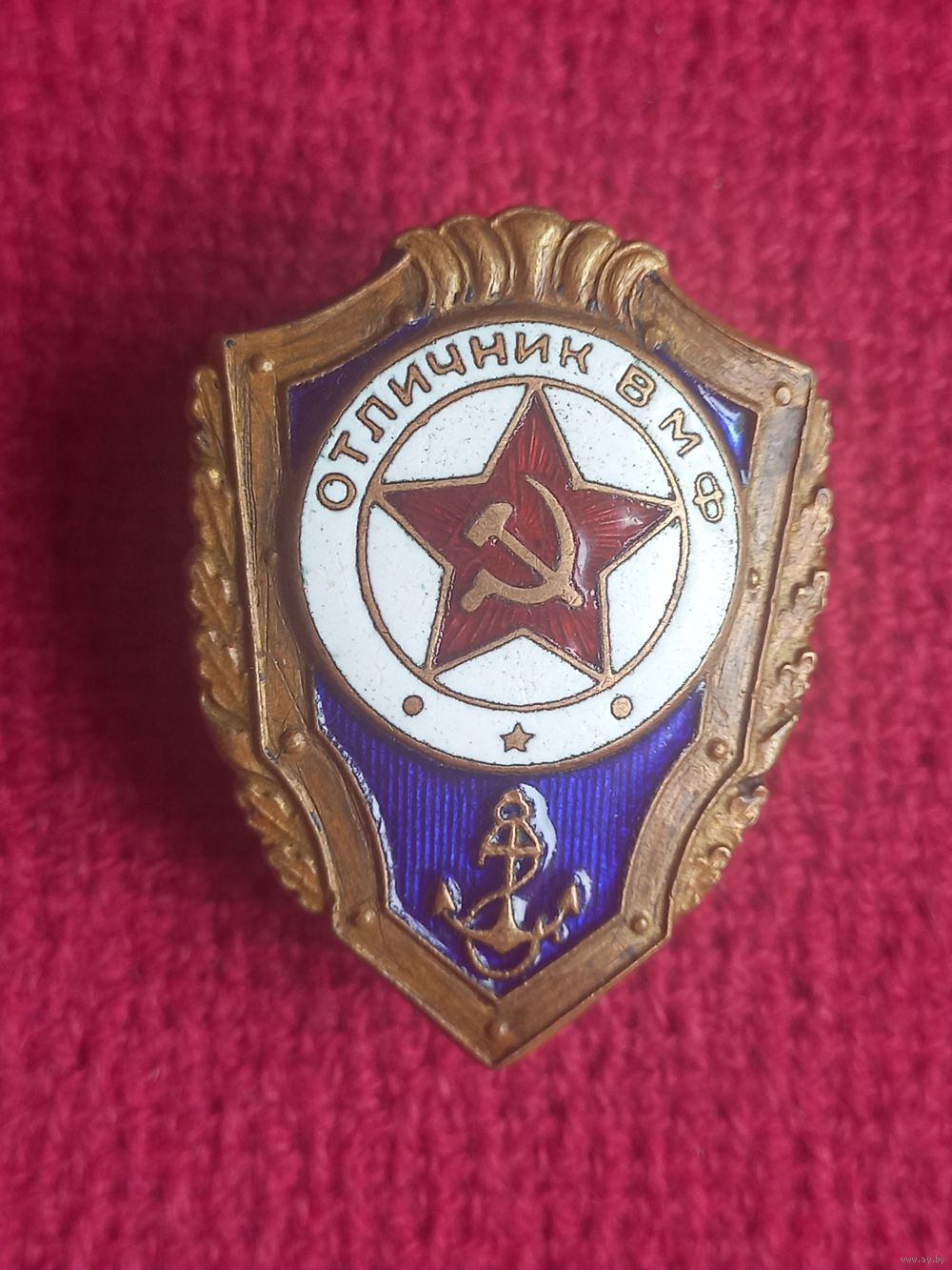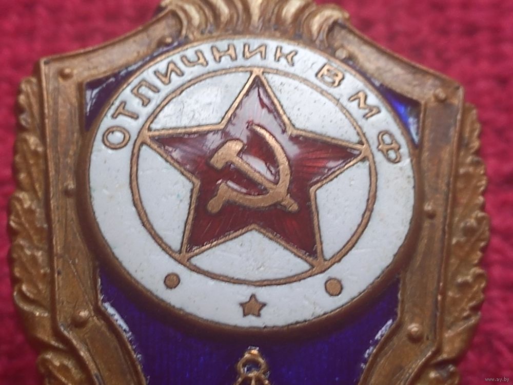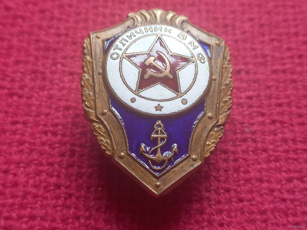 Знак Отличник ВМФ ( Военно-Морской Флот ) СССР. Винтовой. Тяжелый, эмаль.