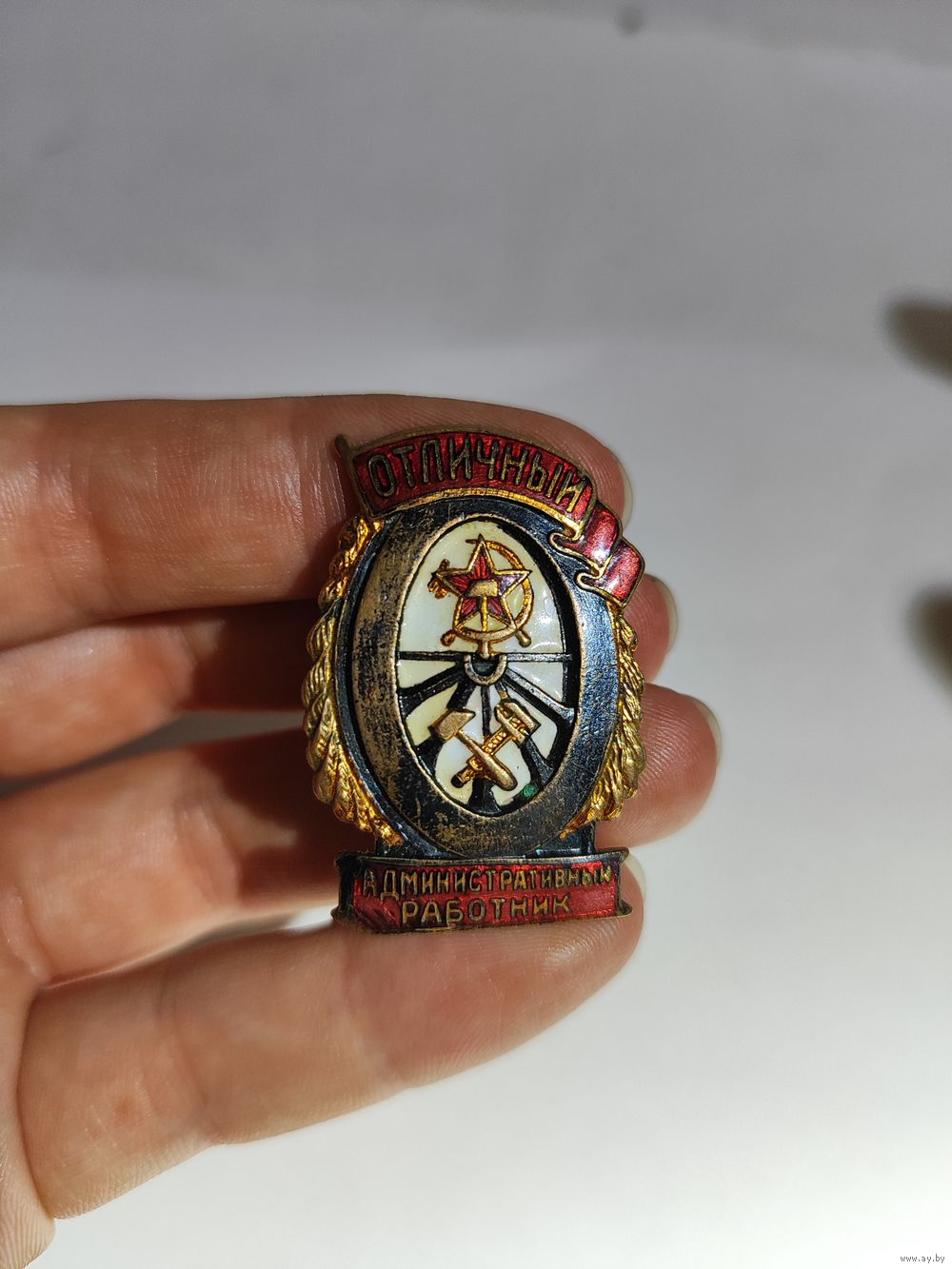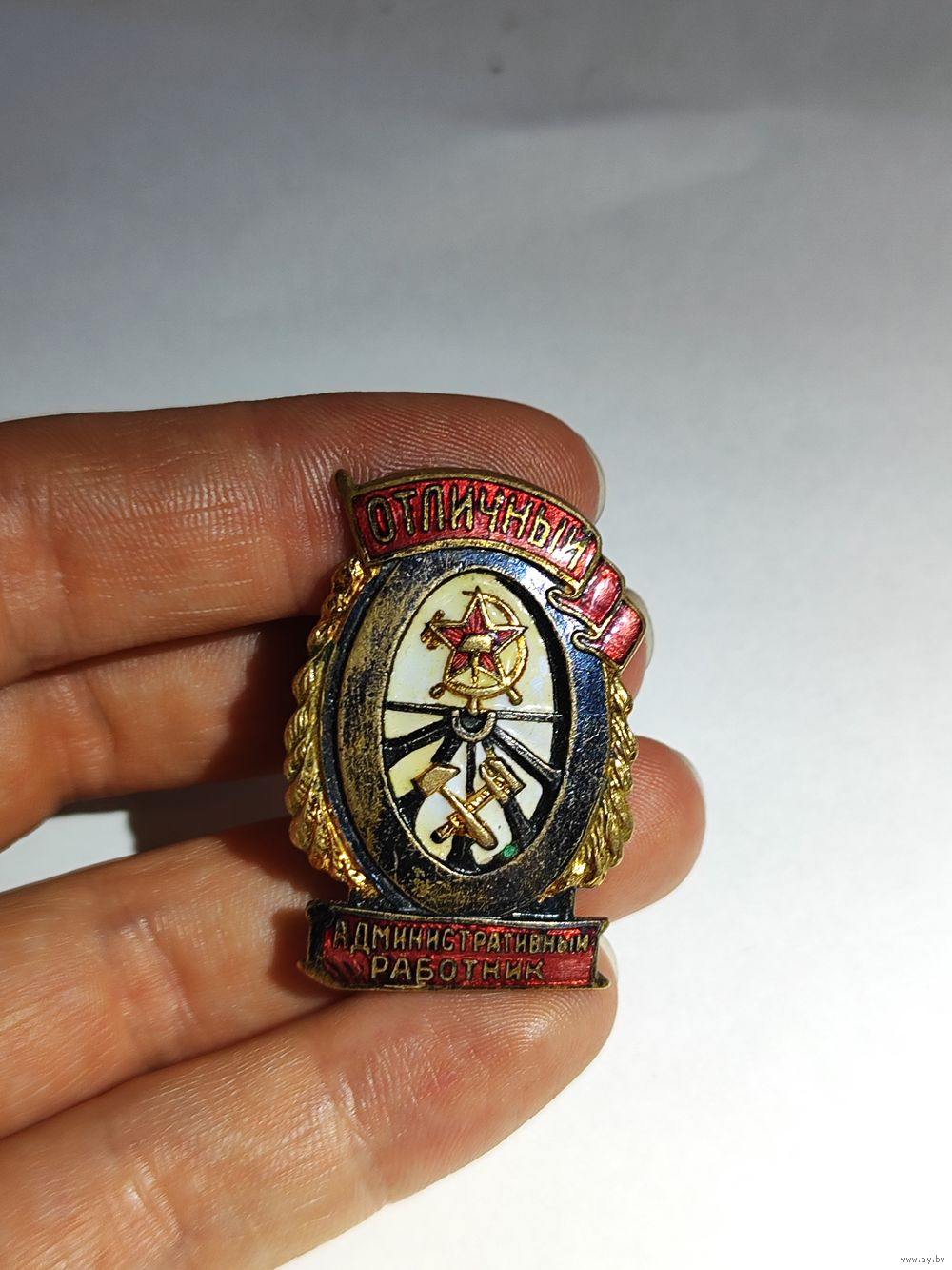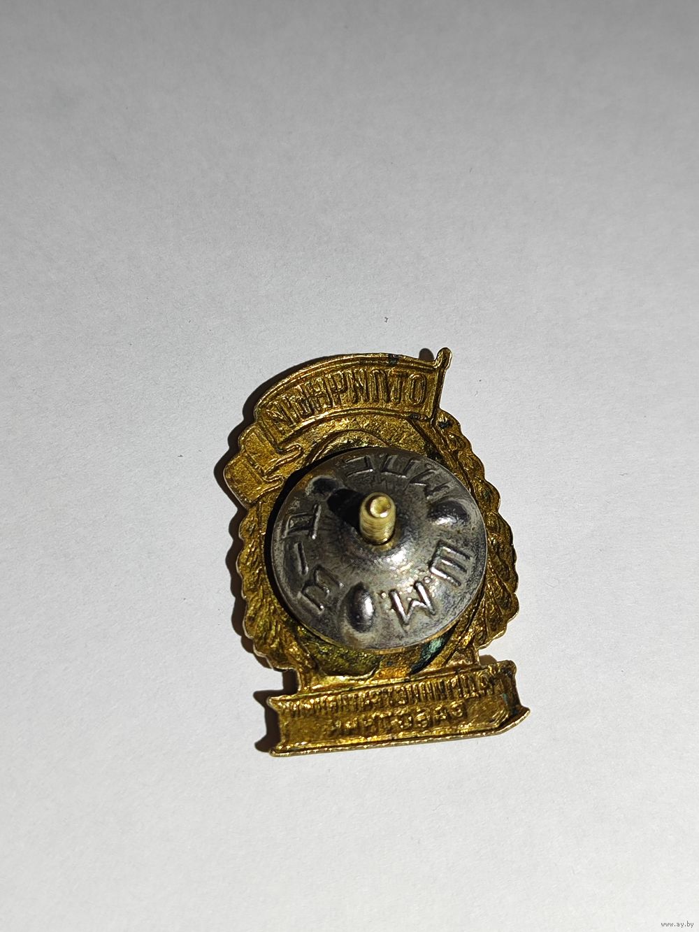 Латунь ,эмаль ,винт. Частичная выработка резьбы на штифте(закрутка держится только на последнем витке.).Состояние на фото.
