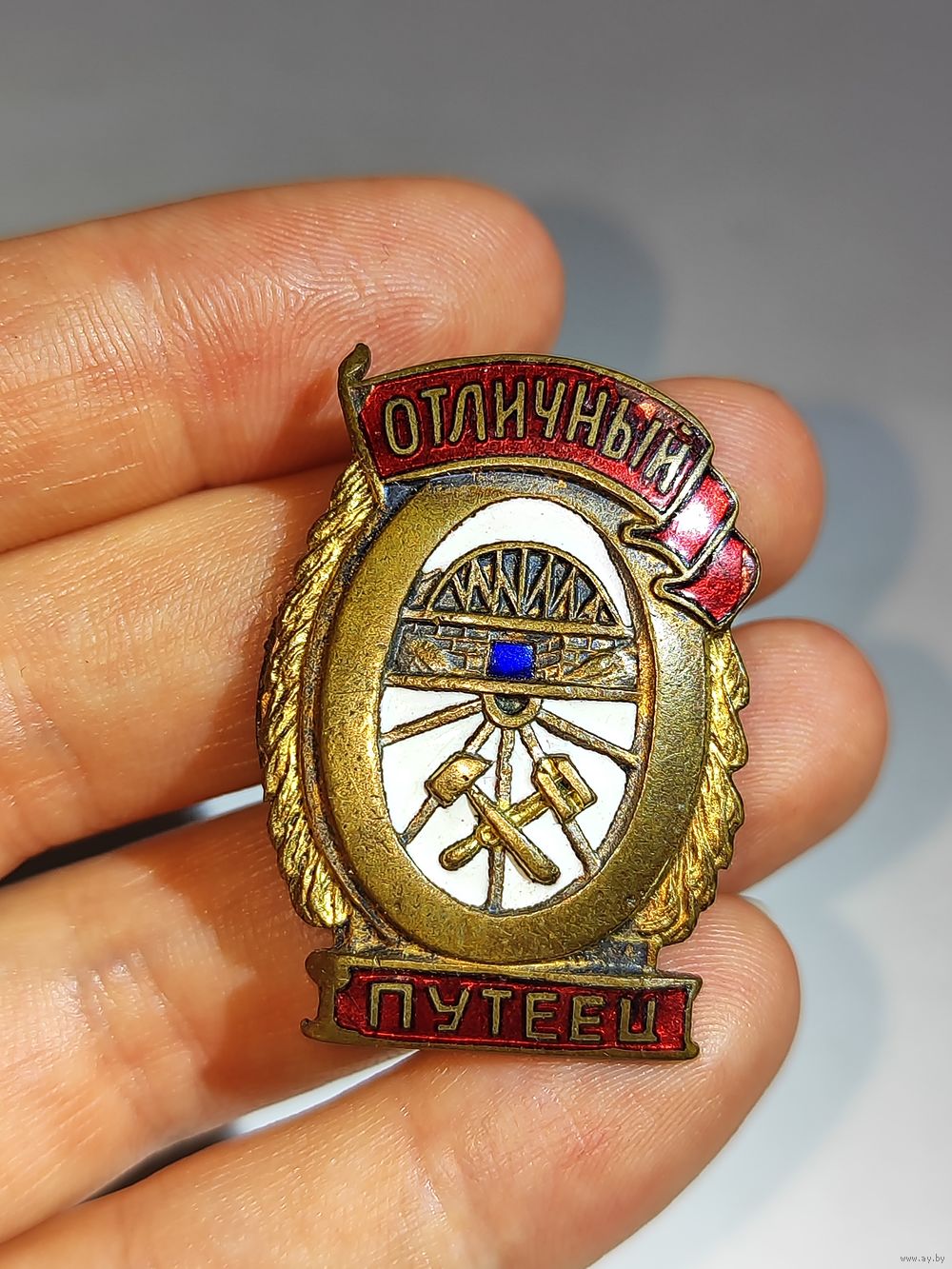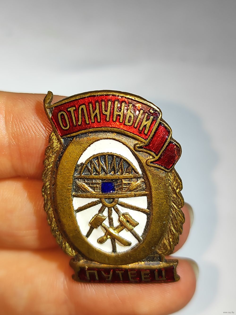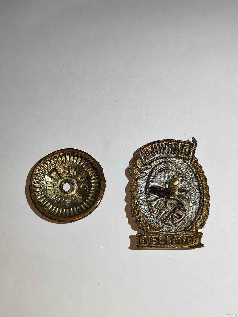 Небольшие сколы эмали на знамени с двух сторон. Выработка резьбы на закрутке(закручивается с большим люфтом). Состояние на фото.