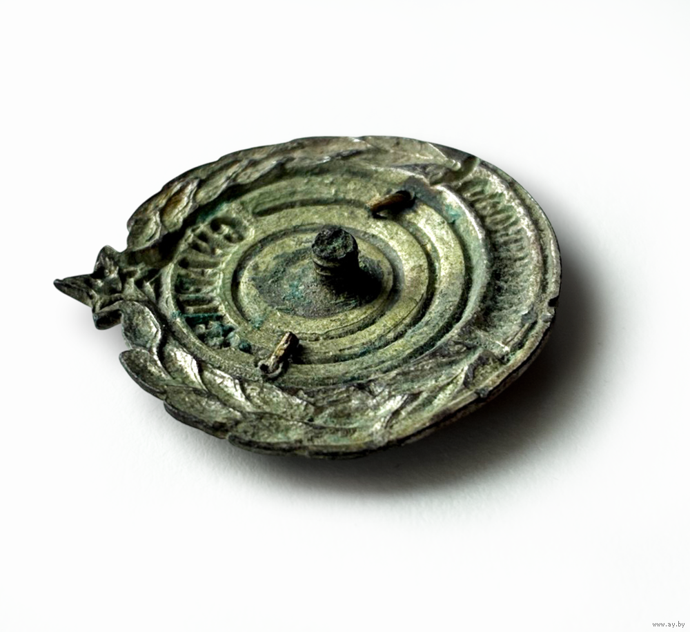 Реверс контррельефный, штифт фактически не сохранился, гайка утеряна. Все эмали сохранились, есть потертости.