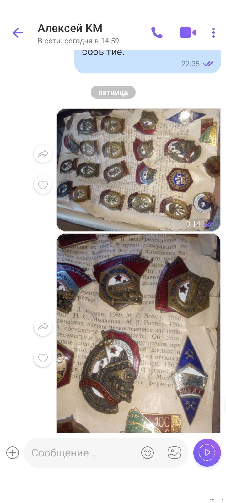 Здравствуйте. Эти значки мною добровольно были отданы товарищу на изучение значков. Как оказалось у него зависимость от алкоголя. Каждая. Семья это потемки. Он к сожалению продал значки курьеру. (Дедушке Степану). Курьеру передал куратору ( Игорю из Бобруйска). Игорь их дальше продал на фестиваль в ДК железнодорожников в Минске на фестивале 19.10.2025 какому-то Александру ( 40 - 50 лет). Уважаемый Александр прошу Вас пожалуйста рассмотреть возможность возврата моих значков. К Вам никак претензий. Я всё понимаю, Вы не знали что они незаконно проданы. Сейчас милиция устанавливает всех причастных. Не кому не желаю зла, лишь хочу вернуть свои значки. Готов компенсировать все затраты по и приобретению. Порядочность гарантирую. С уважением!
