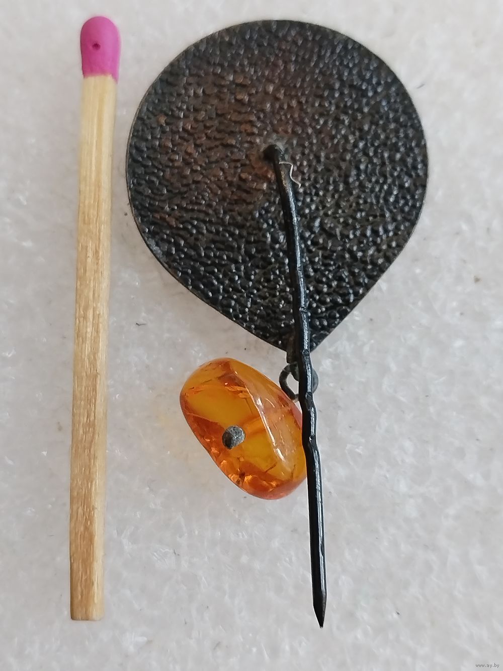 Знак. TSRS, 60 лет. ЛатССР с кусочком янтаря. тяжёлый