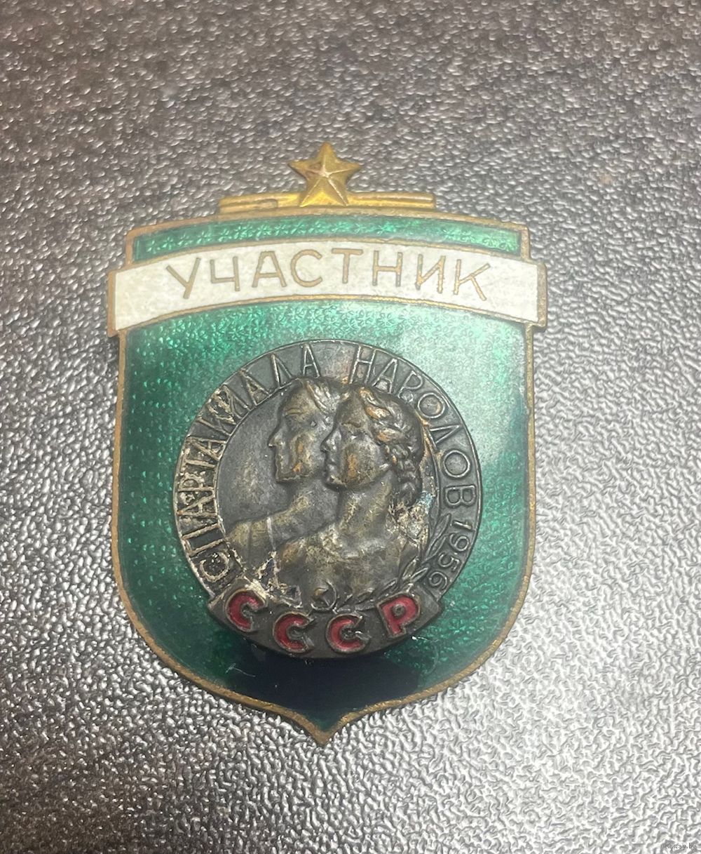 ЗНАК УЧАСТНИК СПАРТАКИАДА НАРОДОВ СССР 1956 ГОД. ТЯЖЕЛЫЙ