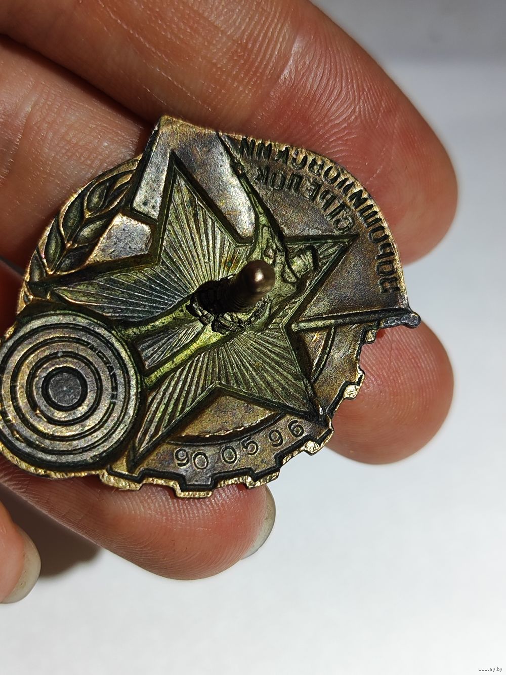 Разновидность с номером на самом знаке. Магнитный. Размер 38,5 х 32,5 мм. Гайка не родная.Сколы эмали на звезде( на правом луче и нижним левым).Поцарапана эмаль на правом и левом луче. Состояние на фото.