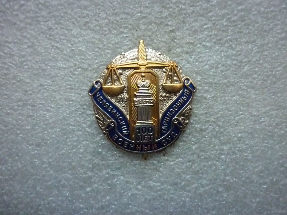 Знак юбилейный. Челябинский гарнизонный военный суд 100 лет. 1919-2019. Нейзильбер позолота цанга.